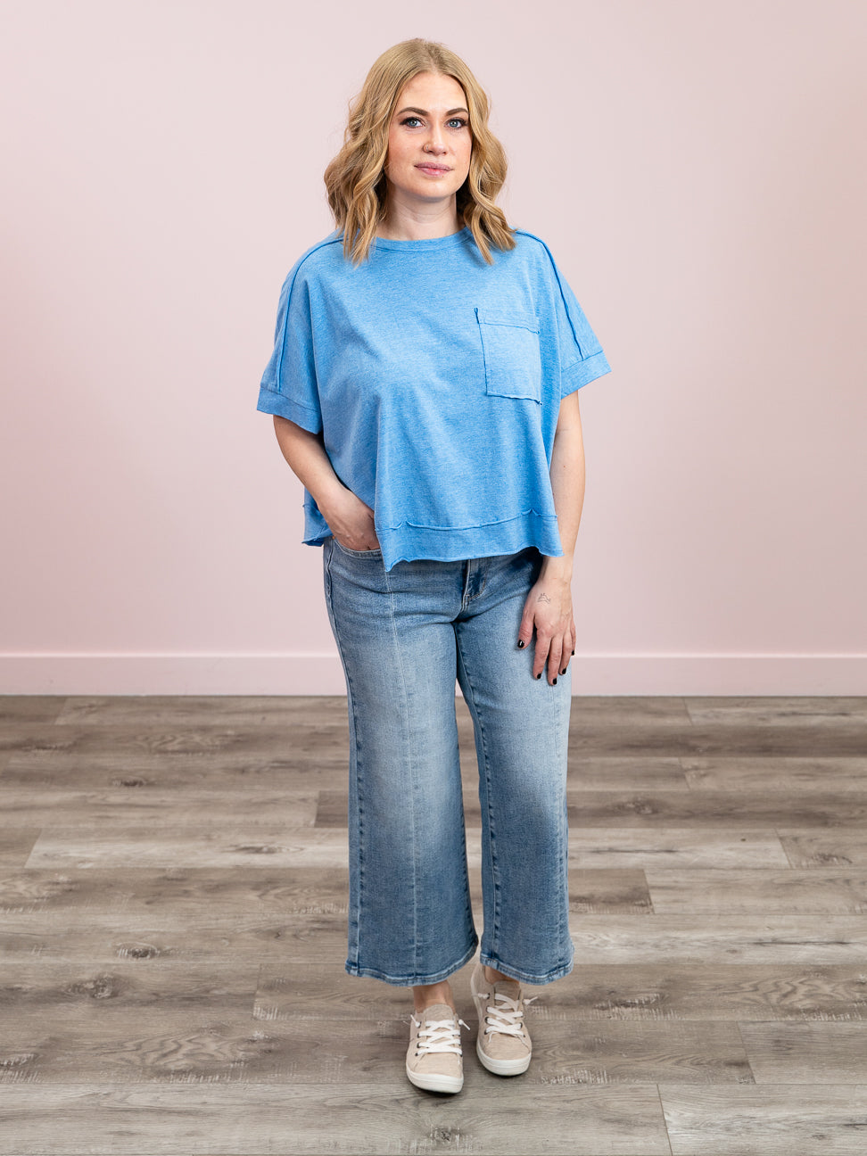 *FINAL SALE* Sammie Oversized Crop Boxy Tee | Heather Ocean Blue
