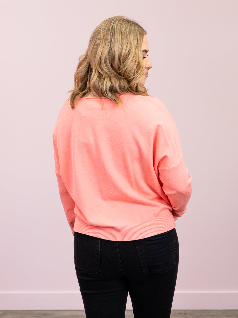Introducing the Chelsea Sweater! Featuring a round neck and dropped shoulders for a relaxed fit, plus a vertical centre seam and hi lo hem with side slits for added style. Made with buttery soft fabric and ribbed trim for the ultimate comfort and chic look.