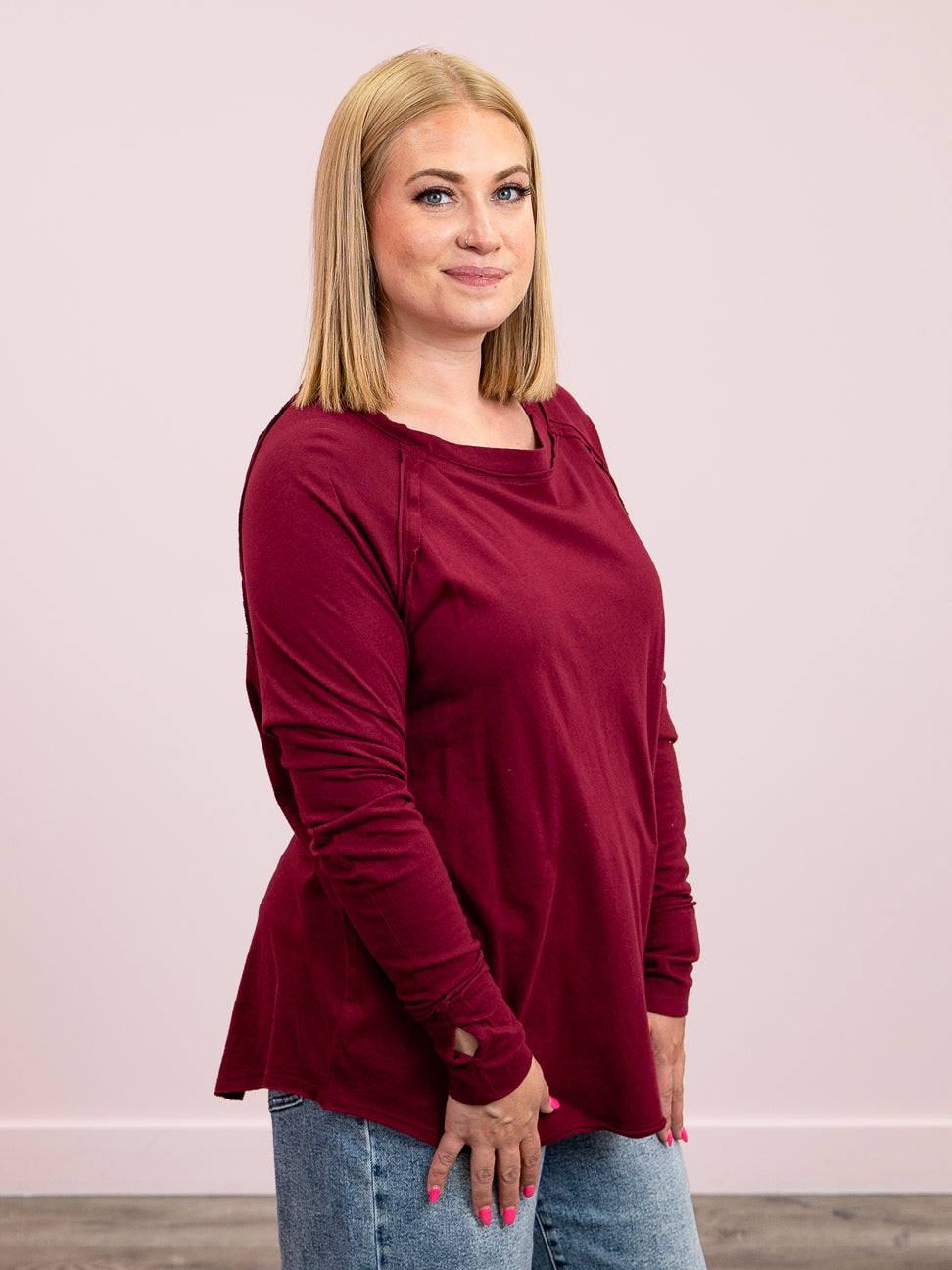 *WAREHOUSE FIND* Hallee Long Sleeve Top | Cabernet – Lavender & Lace Boutique