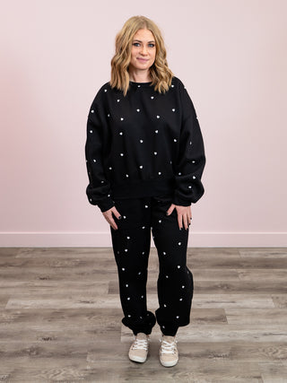 *NEW* Brunette The Label | All Over Tiny Heart Girlfriend Crew | Black & White