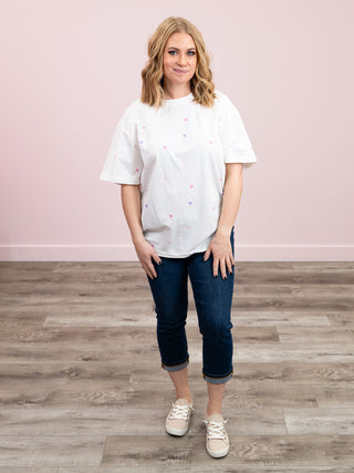 *NEW* Brunette The Label | All Over Tiny Heart Oversized Boxy Tee | Cream & Multicolour