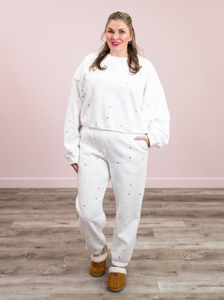 *NEW* Brunette The Label | All Over Tiny Heart Girlfriend Crew | Cream & Multicolour