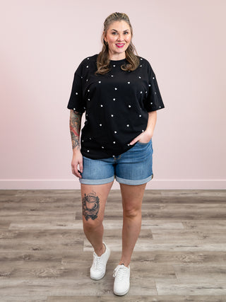 *NEW* Brunette The Label | All Over Tiny Heart Oversized Boxy Tee | Black & White