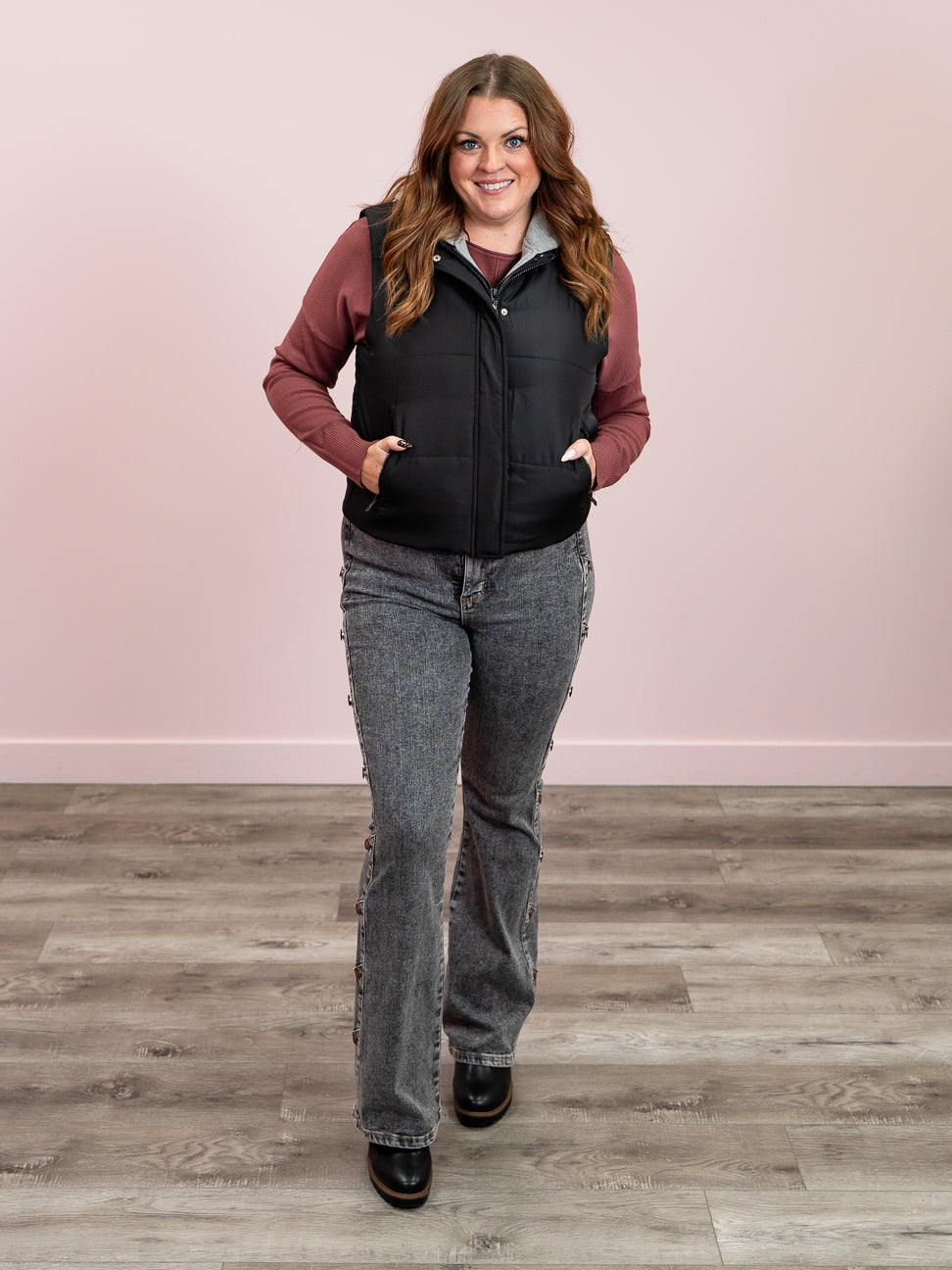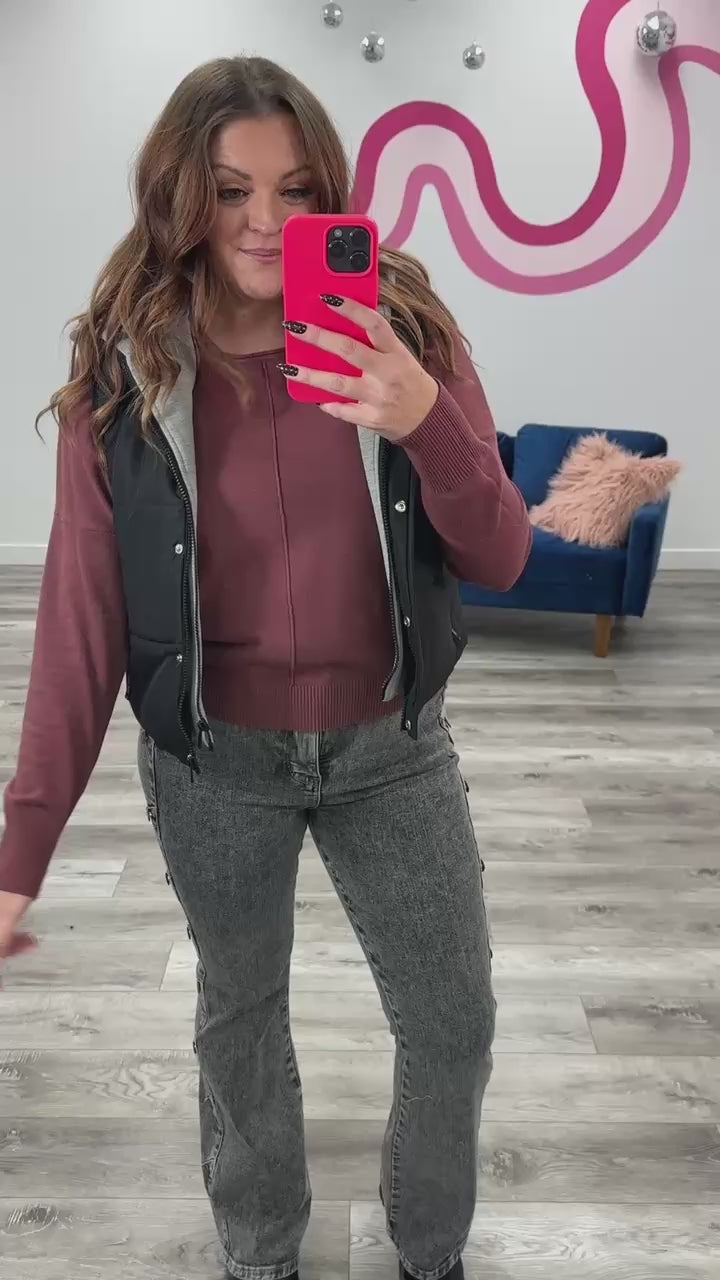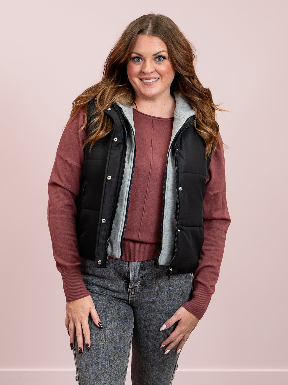 Stay cozy and cool with the Room 34 Starry Puffer Vest. Featuring a detachable hoodie lining for versatile style, this lightweight puffer zips and buttons up to keep the chill out. Secure your essentials in the zippered pockets, perfect for hands-on adventures. Elevate your everyday look with this vest!
