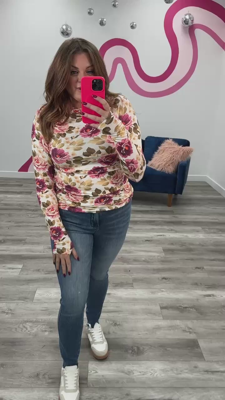 Soft, stretchy, and effortlessly stylish — the Blair Long Sleeve Top features a classic round neck, long sleeves with thumbholes, and a delicate floral design. Made from buttery soft fabric that moves with you, it’s perfect for layering or wearing on its own.