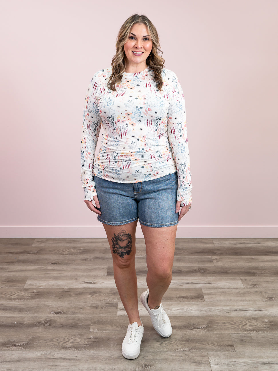 Soft, stretchy, and effortlessly stylish — the Blair Long Sleeve Top features a classic round neck, long sleeves with thumbholes, and a delicate floral design. Made from buttery soft fabric that moves with you, it’s perfect for layering or wearing on its own.