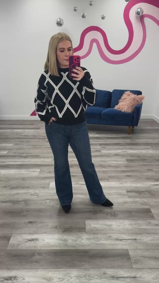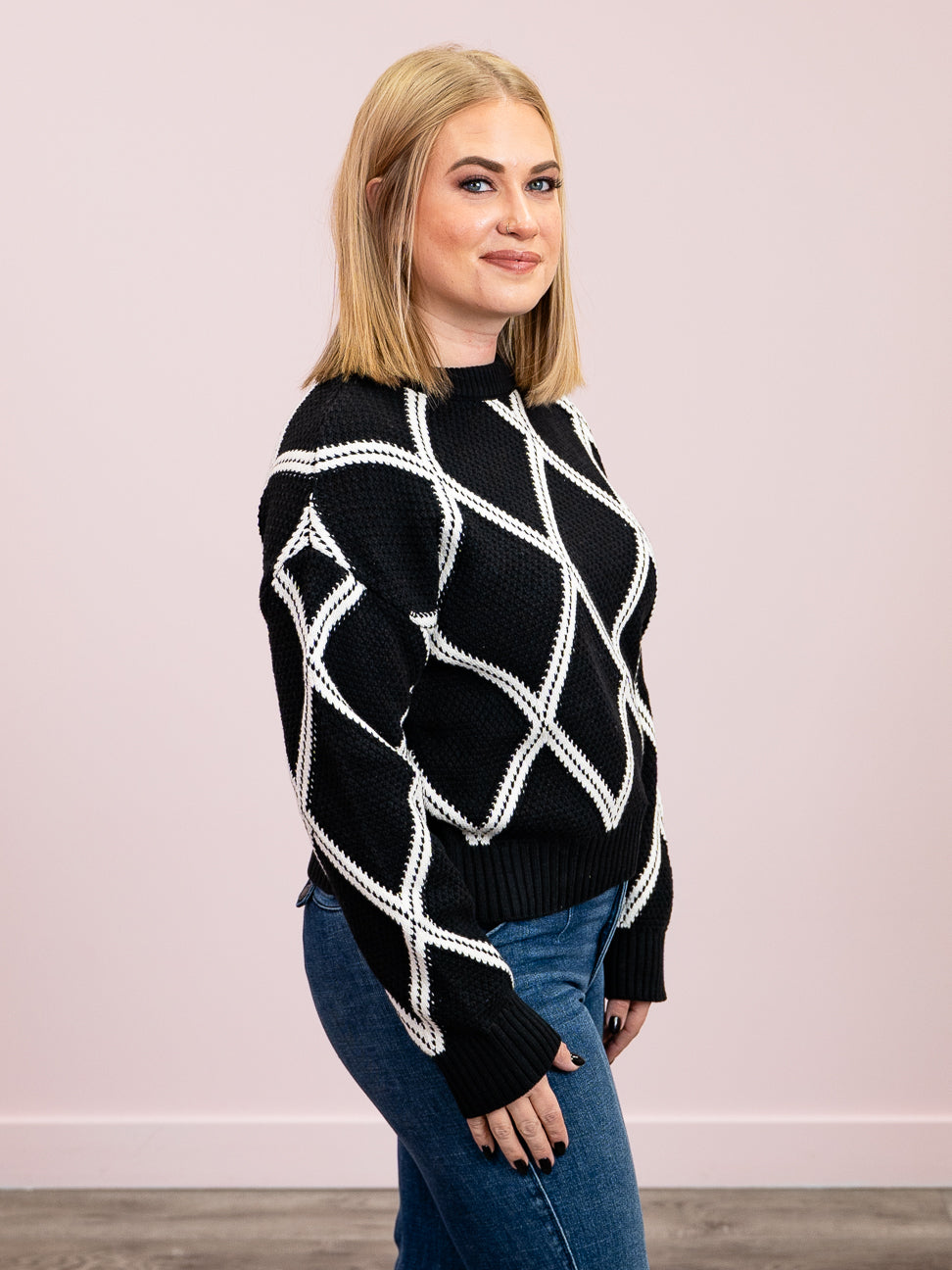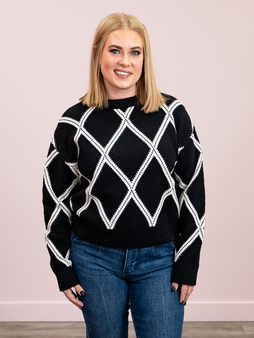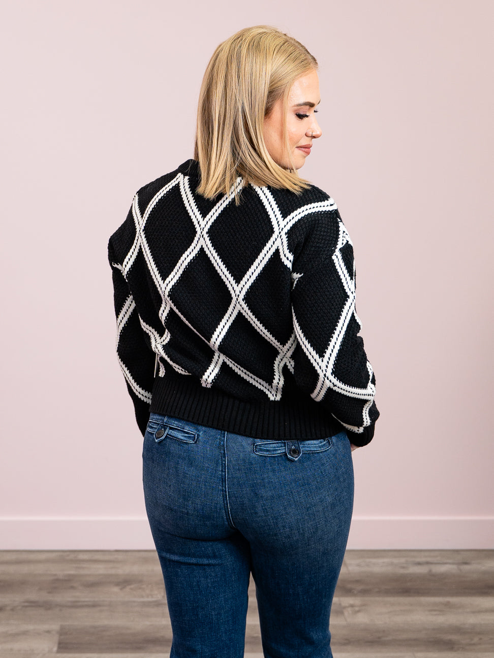 DEX | Bliss Diamond Check Sweater | Black & Cream