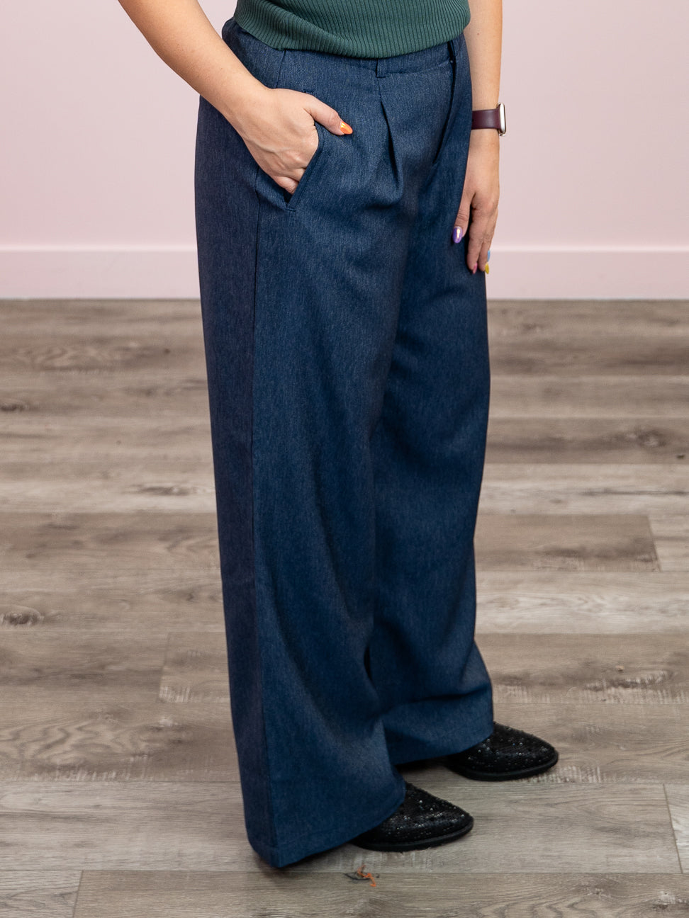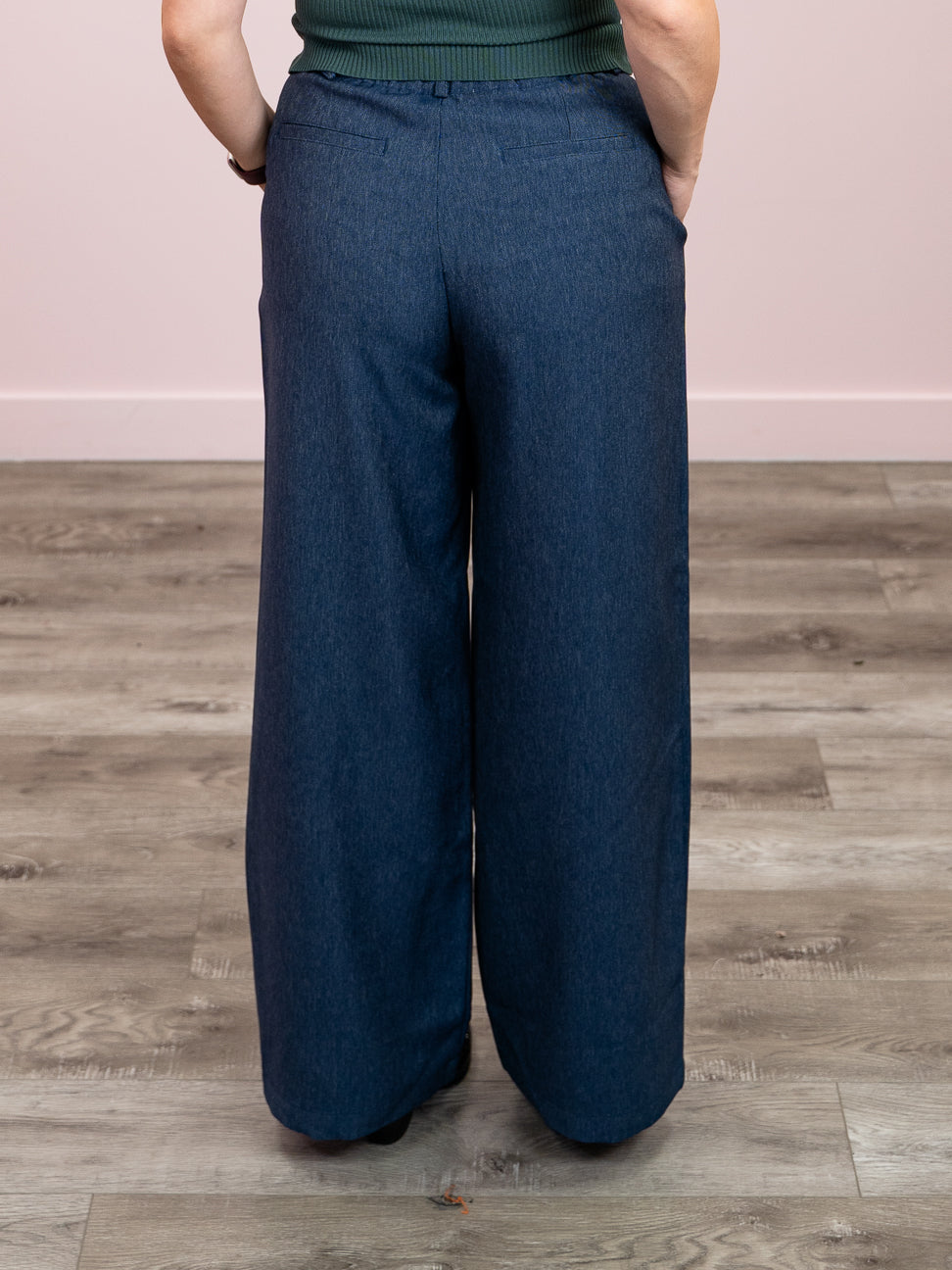DEX | Kian Belted Denim Effect Pant | Deep Indigo