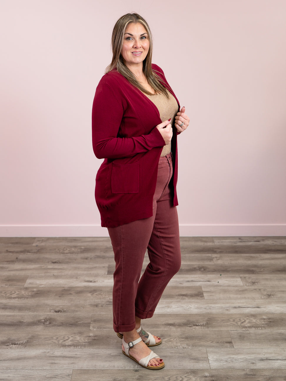 This lightweight mid-thigh cardigan is perfect for all day wear. Its open front, ribbed sleeve cuffs and hem and convenient pockets make it comfortable and easy to wear.