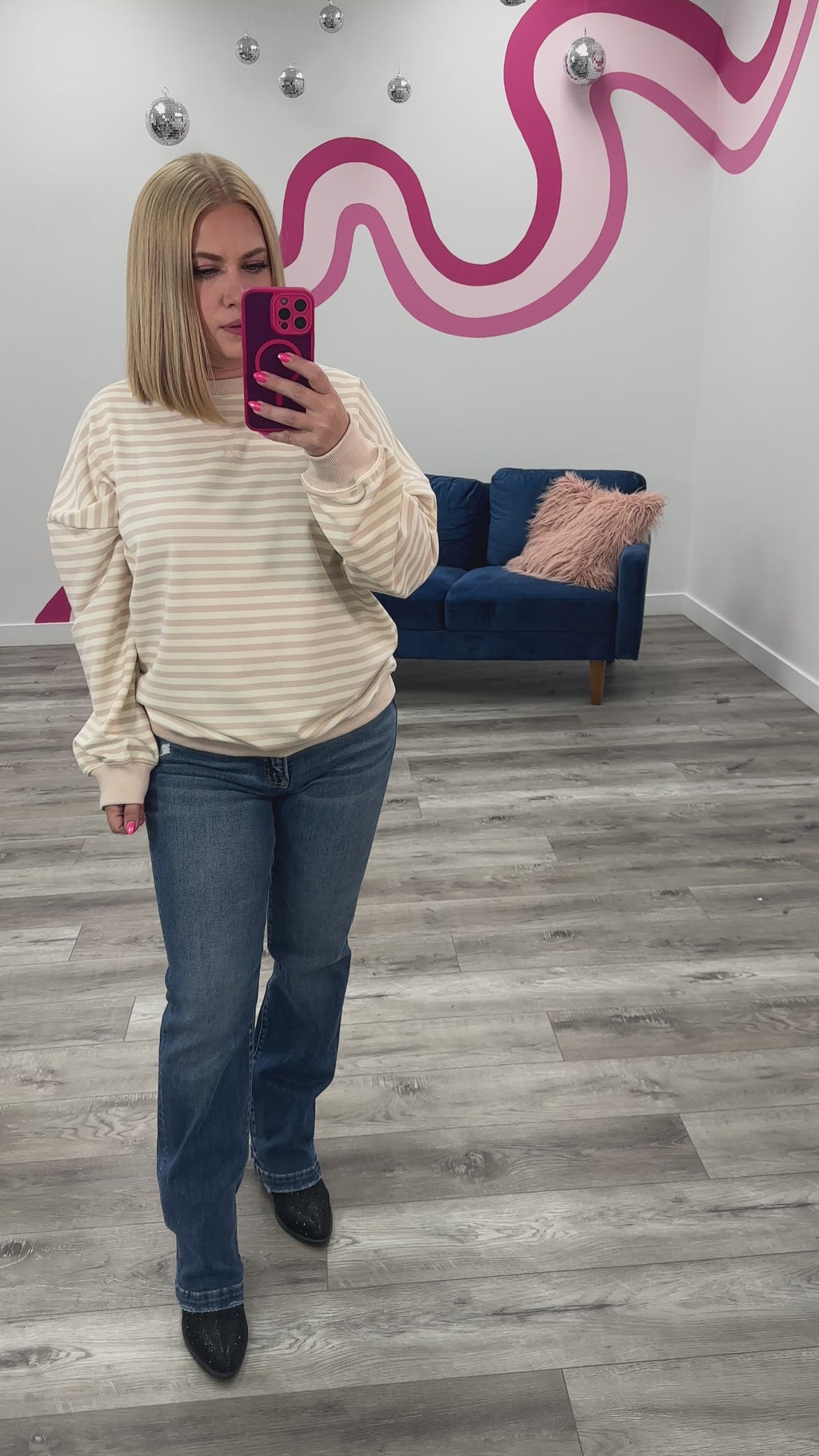 Stay cozy and stylish in the Amberly Striped Pullover. Featuring a round neck, dropped shoulders, and long sleeves, it’s designed with a relaxed fit and finished with ribbed trim. The classic striped design adds a timeless touch to this everyday essential.