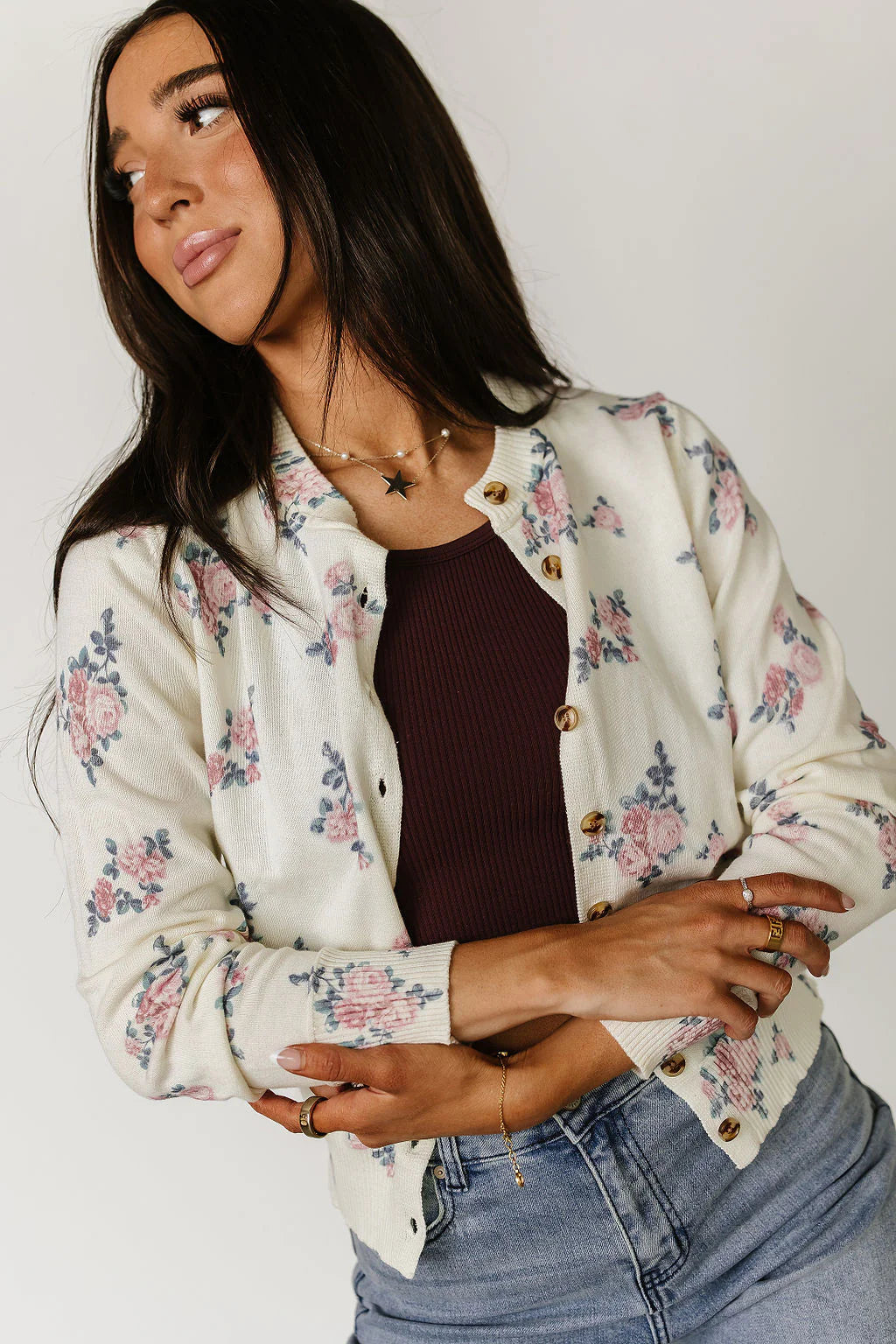 This floral cardigan is the perfect mix of cozy and cute. With soft knit fabric and the sweetest bloom details, it’s your go-to for chilly mornings, brunch dates, or layering over anything for a little extra charm. Basically—it's like wearing a garden hug.