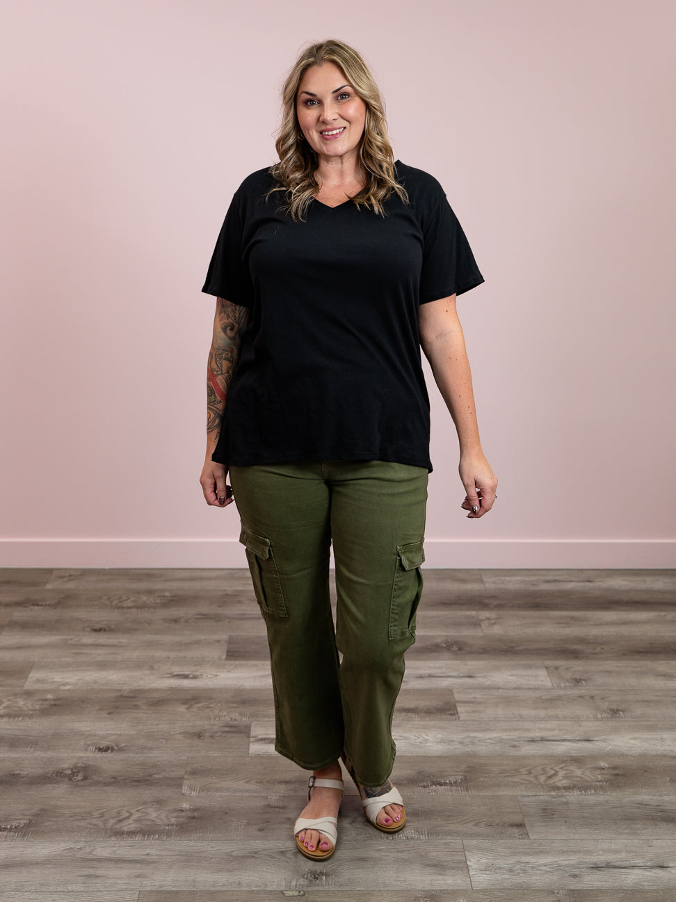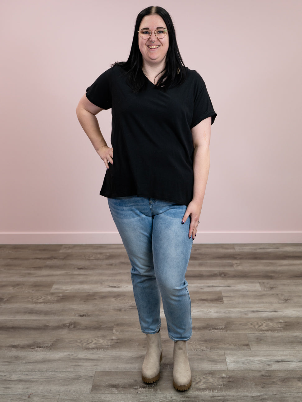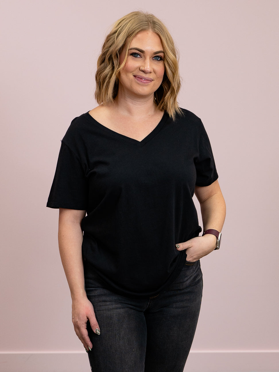 *12PM DEAL* Franklin V-Neck Tee | Black – Lavender & Lace Boutique