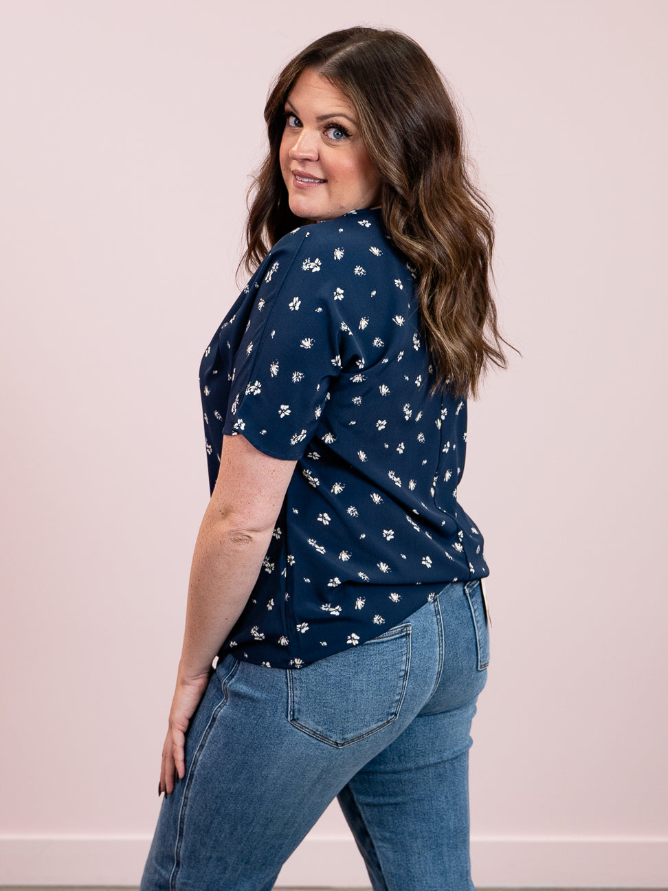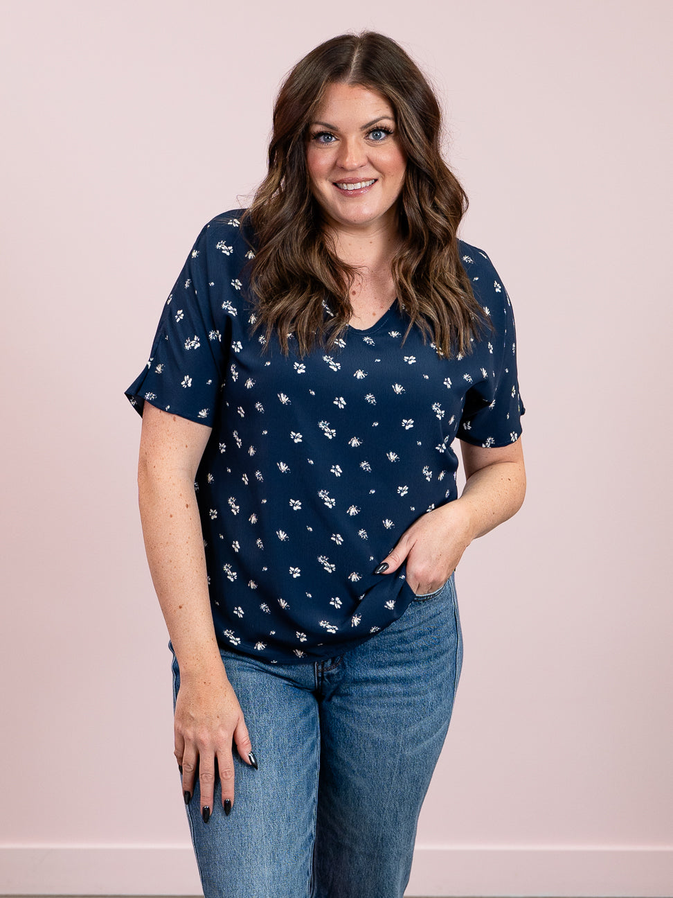 Botanical Dreams Floral V-Neck Blouse | Navy