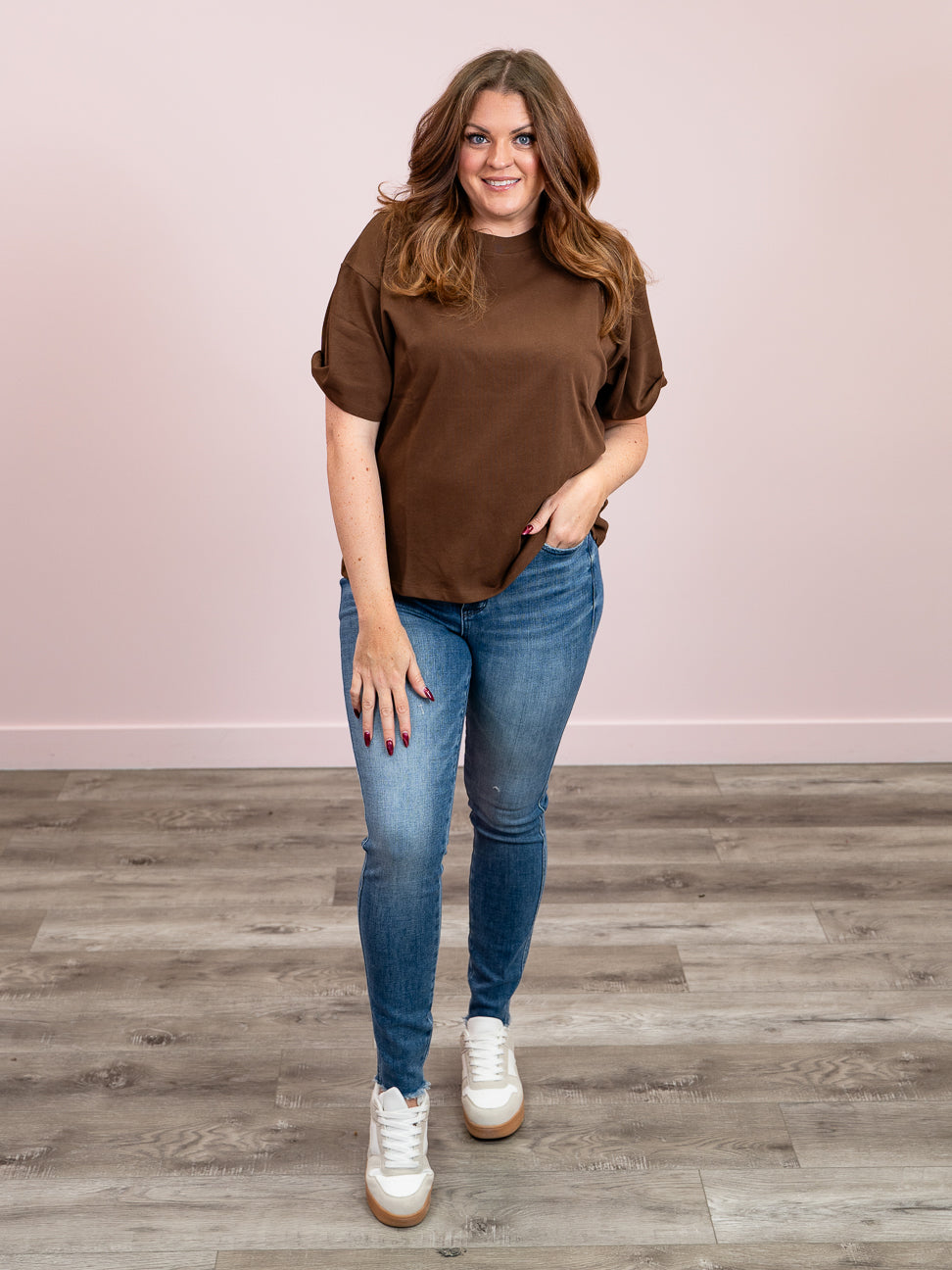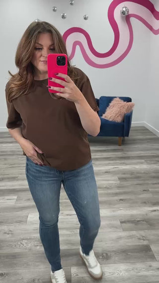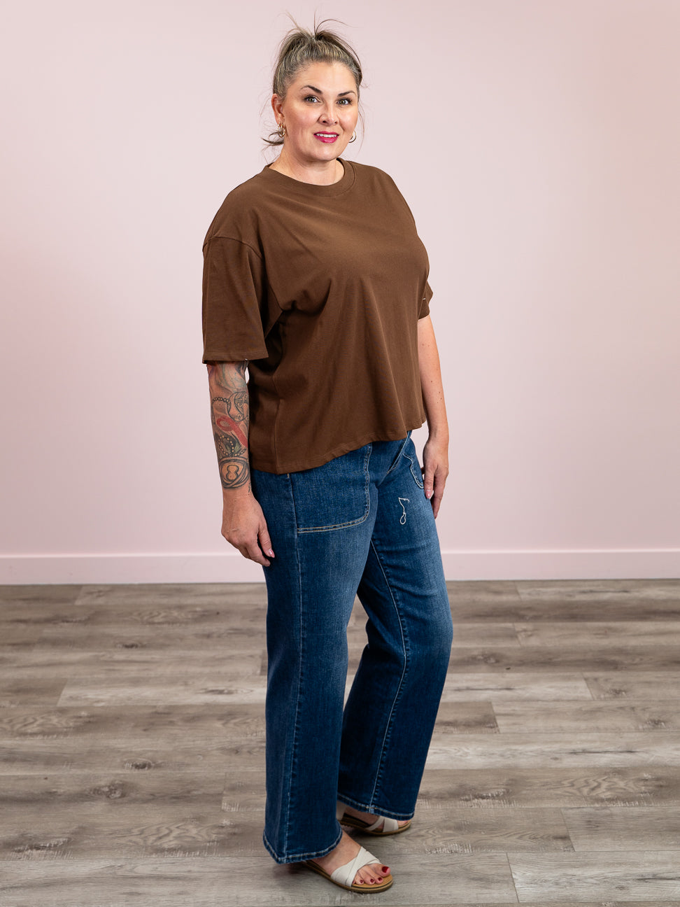 Build your dream wardrobe with our Basics Collection. Our 100% cotton Boxy Tee features a wide-cut body that hits right at your hips. Just like that perfect vintage tee hanging in your closet.