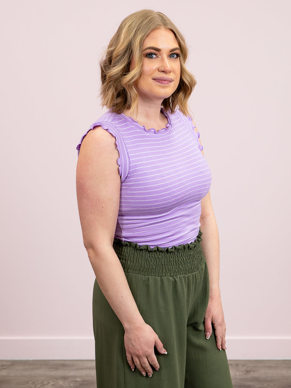 *SUNDAY STEAL* Camie Ribbed Ruffle Stripe Tank Top | Bright Lavender & – Lavender & Lace Boutique