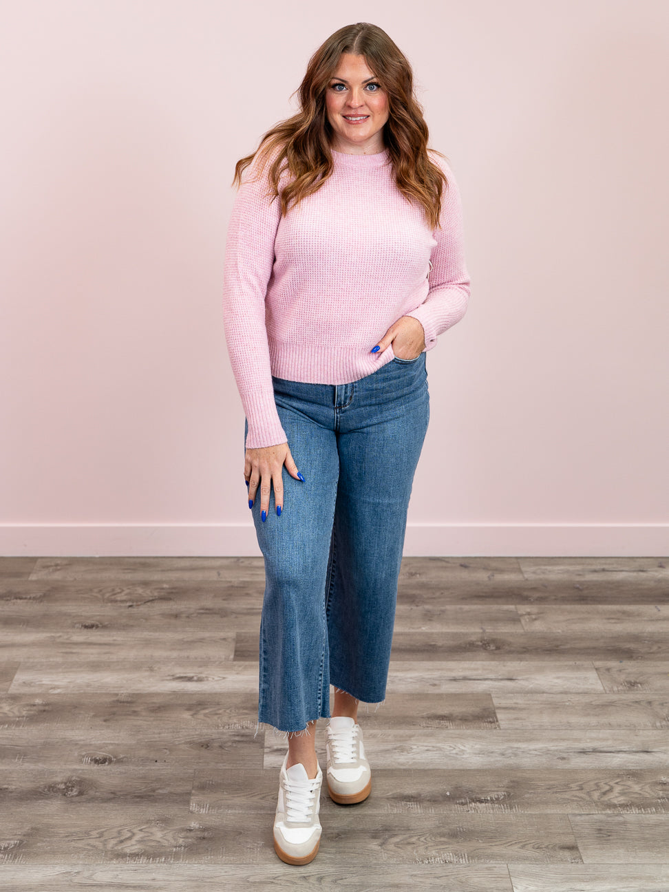 Cassidy Waffle Sweater | Pink – Lavender & Lace Boutique