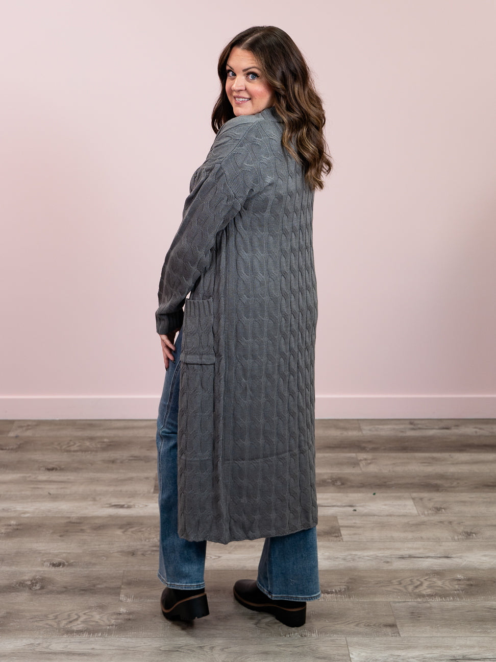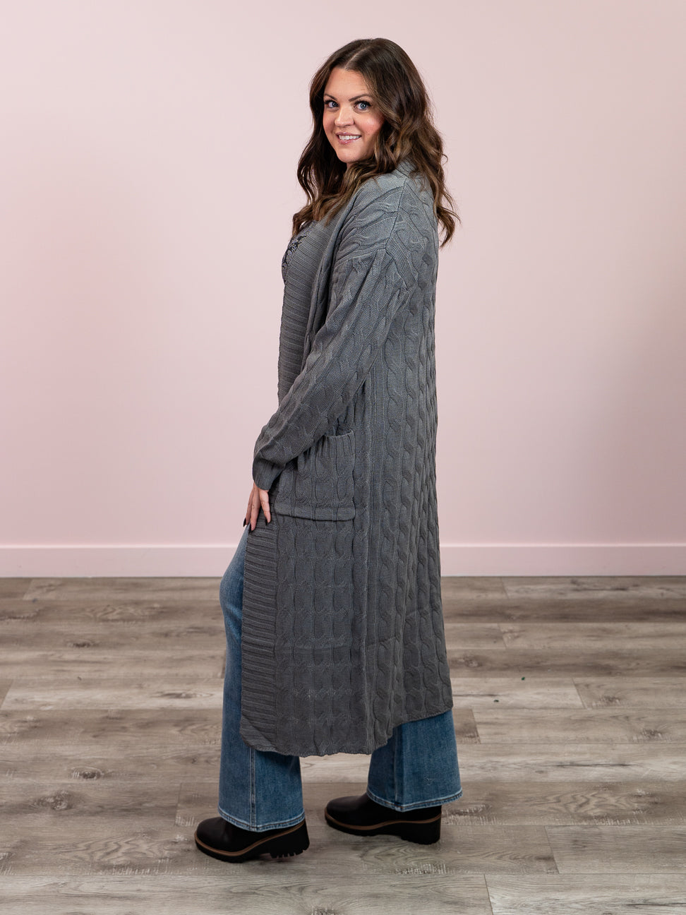 Celia Cable Knit Cardigan | Charcoal – Lavender & Lace Boutique