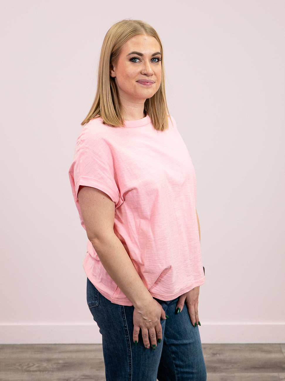 Effortlessly chic and wonderfully comfortable, the Claire Slub Tee in Dark Pink is your new go-to basic. Crafted from soft cotton slub fabric with a subtle texture that catches the light just right, this round neck tee features short sleeves perfect for layering or wearing solo. The relaxed fit flatters every body type, while the rich dark pink hue pairs seamlessly with your favorite denim or skirts. Simple, stylish, and oh-so-wearable—because the best wardrobe staples are the ones you reach for again and again.