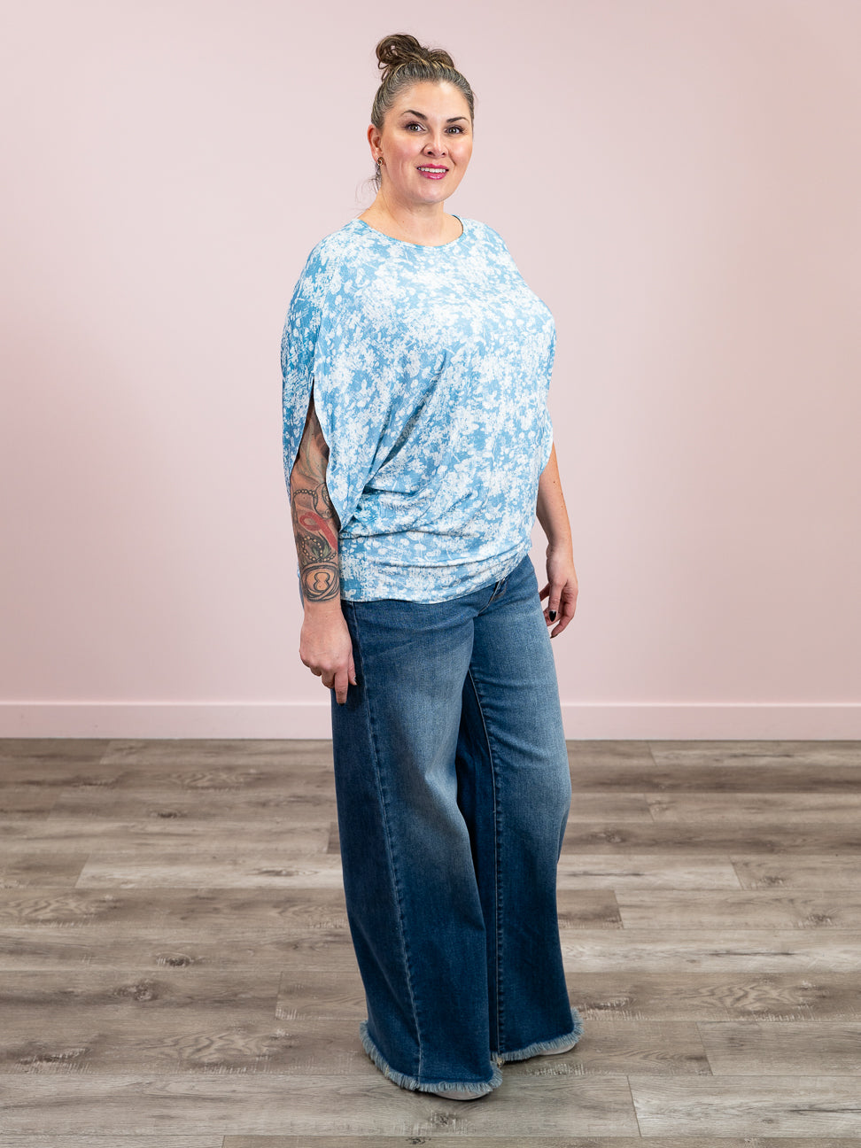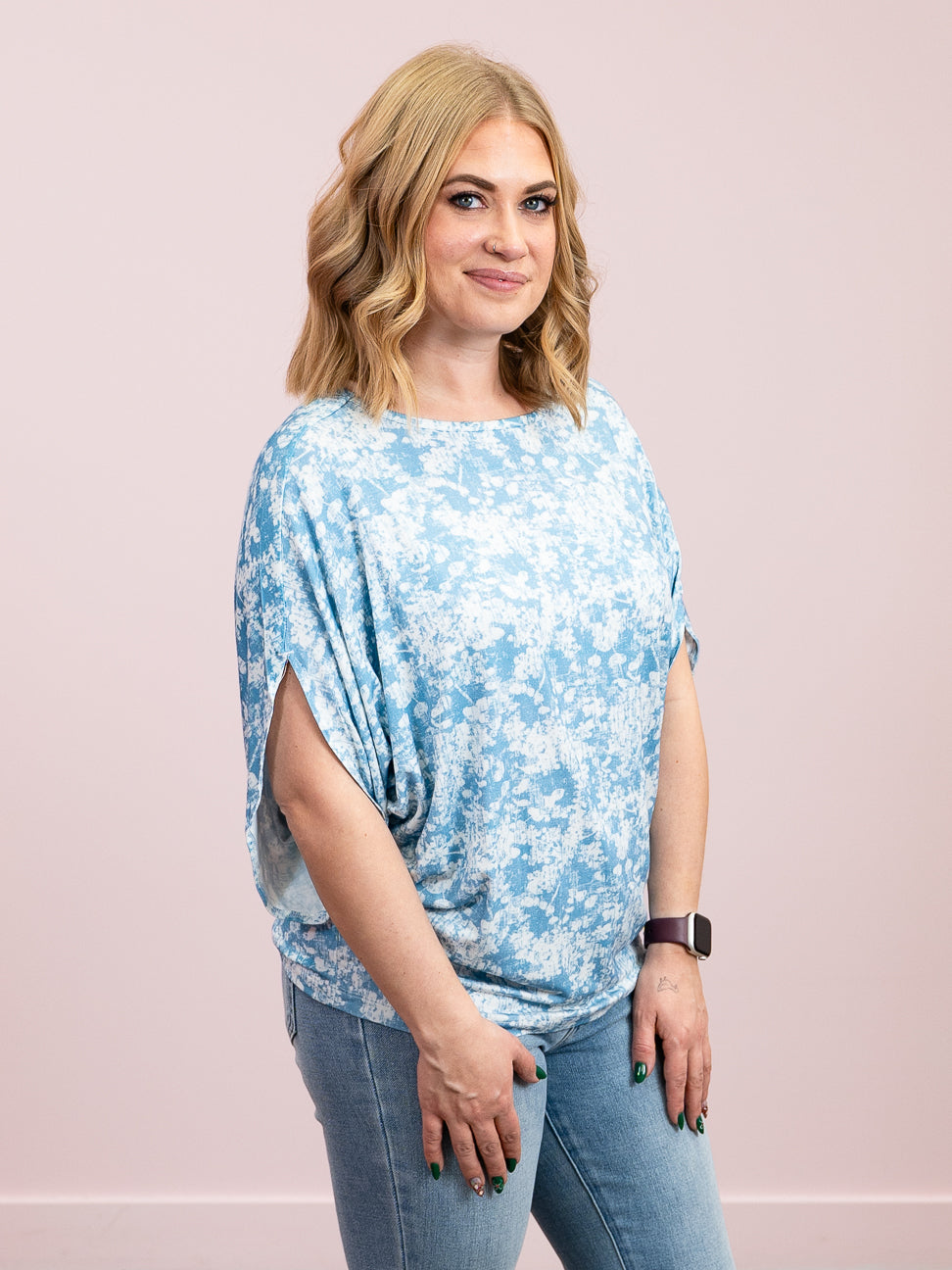 *1PM DEAL* Darcy Dolman Top | Blue & Ivory Abstract