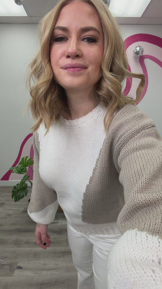 Effortless style meets cozy comfort in this charming colorblock crew neck sweater. The relaxed drop shoulder silhouette pairs beautifully with strategic color-blocking that flatters every figure. Soft knit fabric drapes gracefully, while ribbed details at the neckline, hemline, and cuffs keep everything polished and put-together. Perfect for layering or wearing solo, this versatile piece transitions seamlessly from casual coffee dates to weekend adventures.