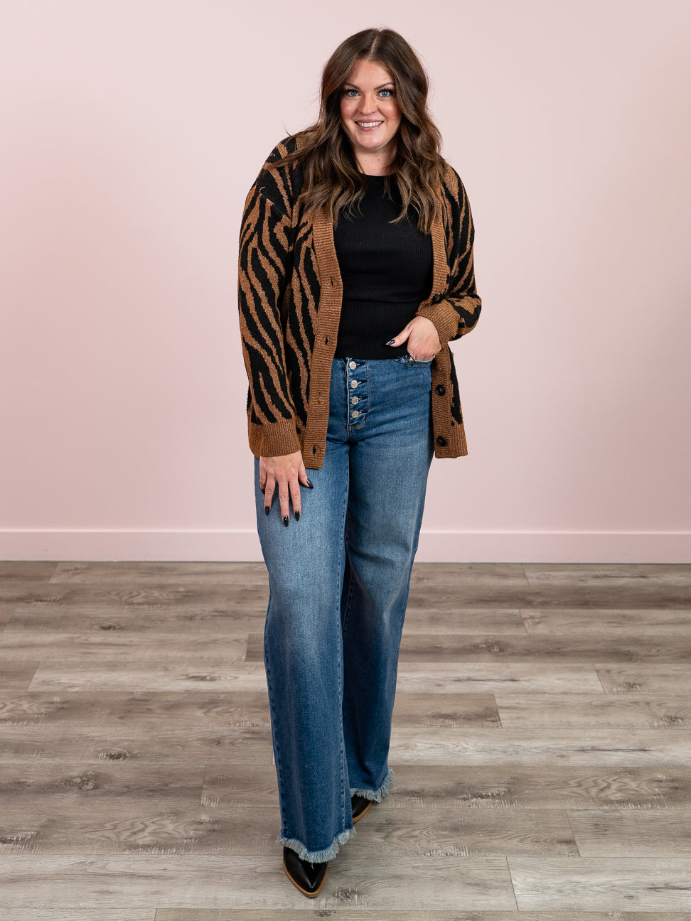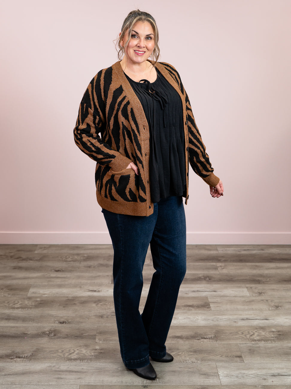 Room 34 | Vicki Button Front Patterned Cardigan | Tiger