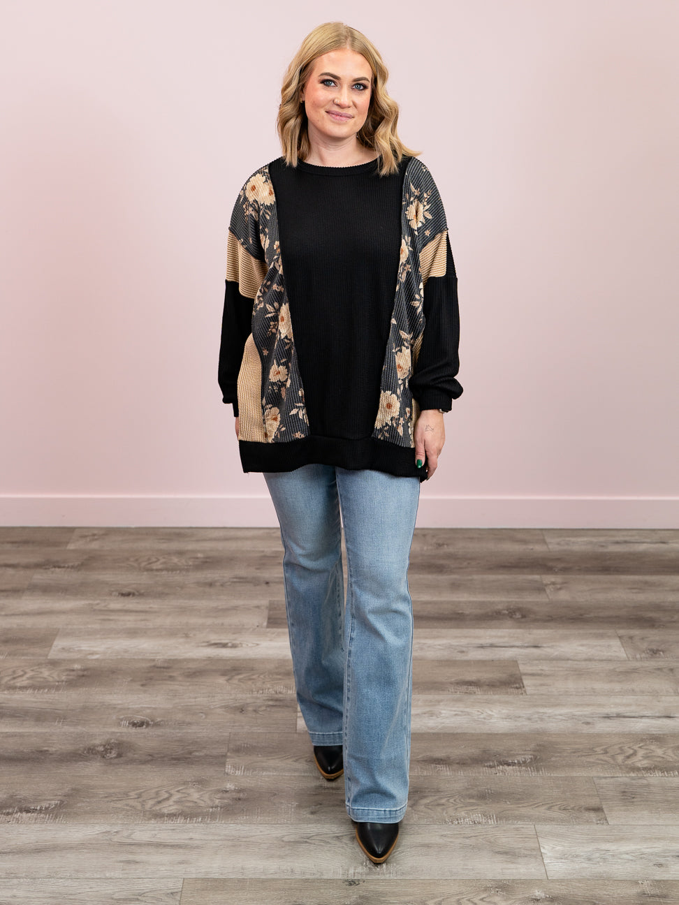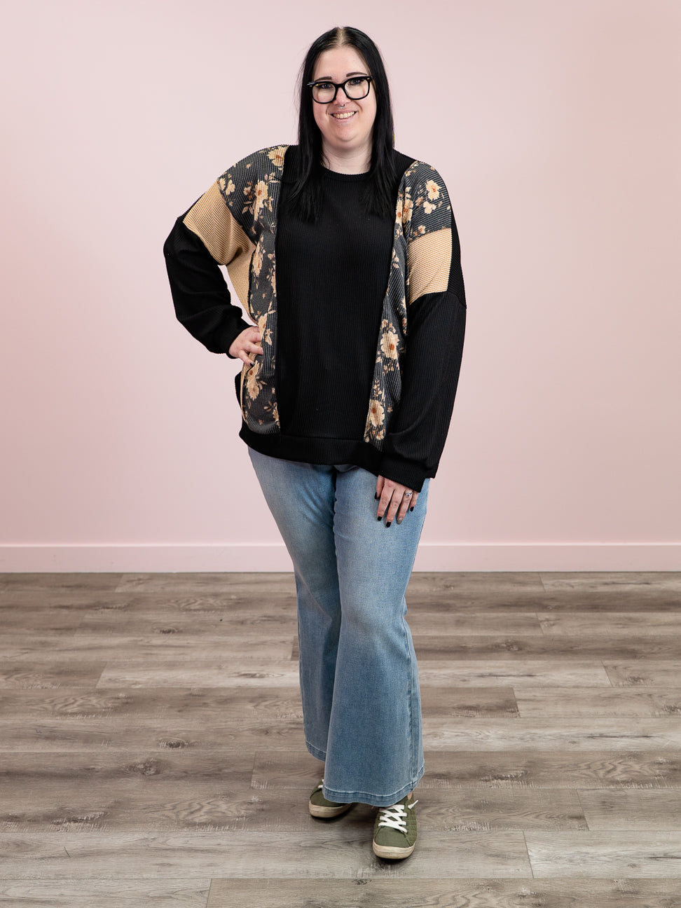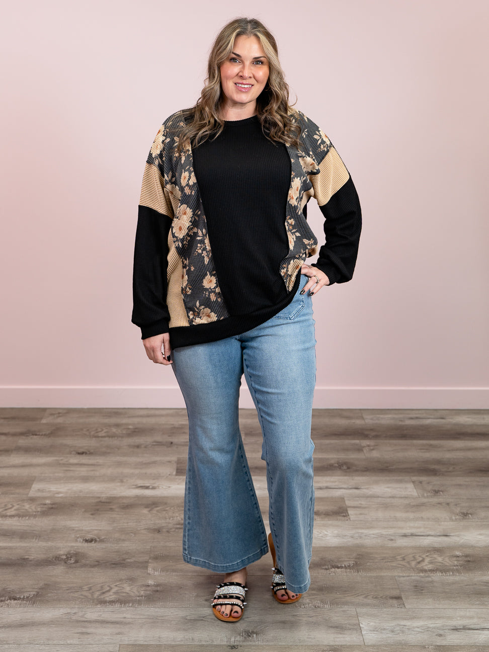 *NEW* Downtown Petals Ribbed Long Sleeve Top | Black – Lavender & Lace Boutique