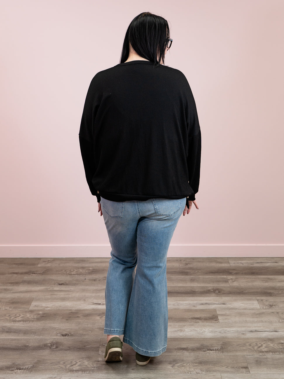 *NEW* Downtown Petals Ribbed Long Sleeve Top | Black