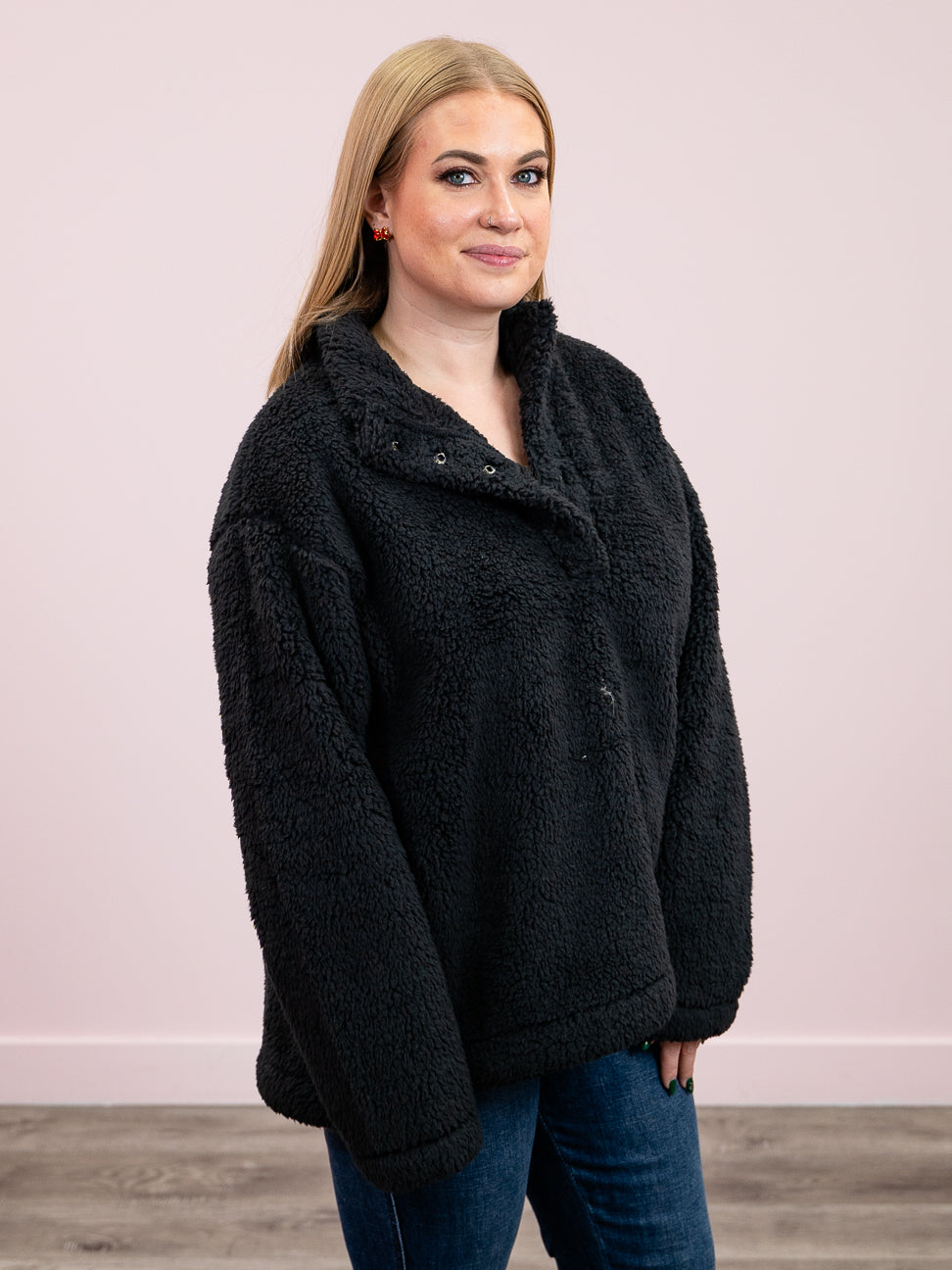*NEW* Gina Cozy Sherpa Pullover | Black – Lavender & Lace Boutique