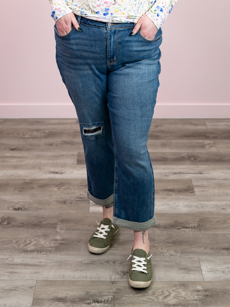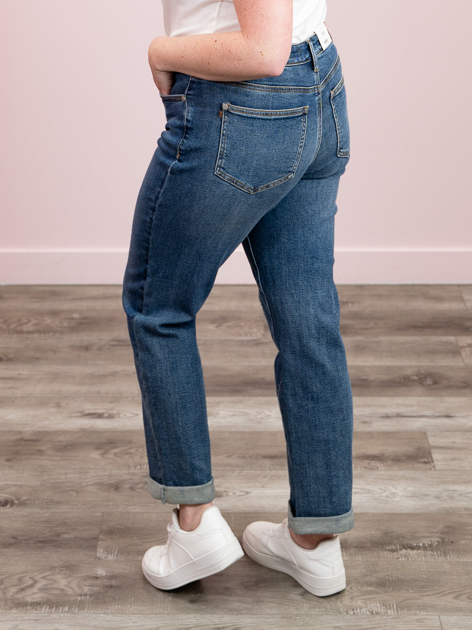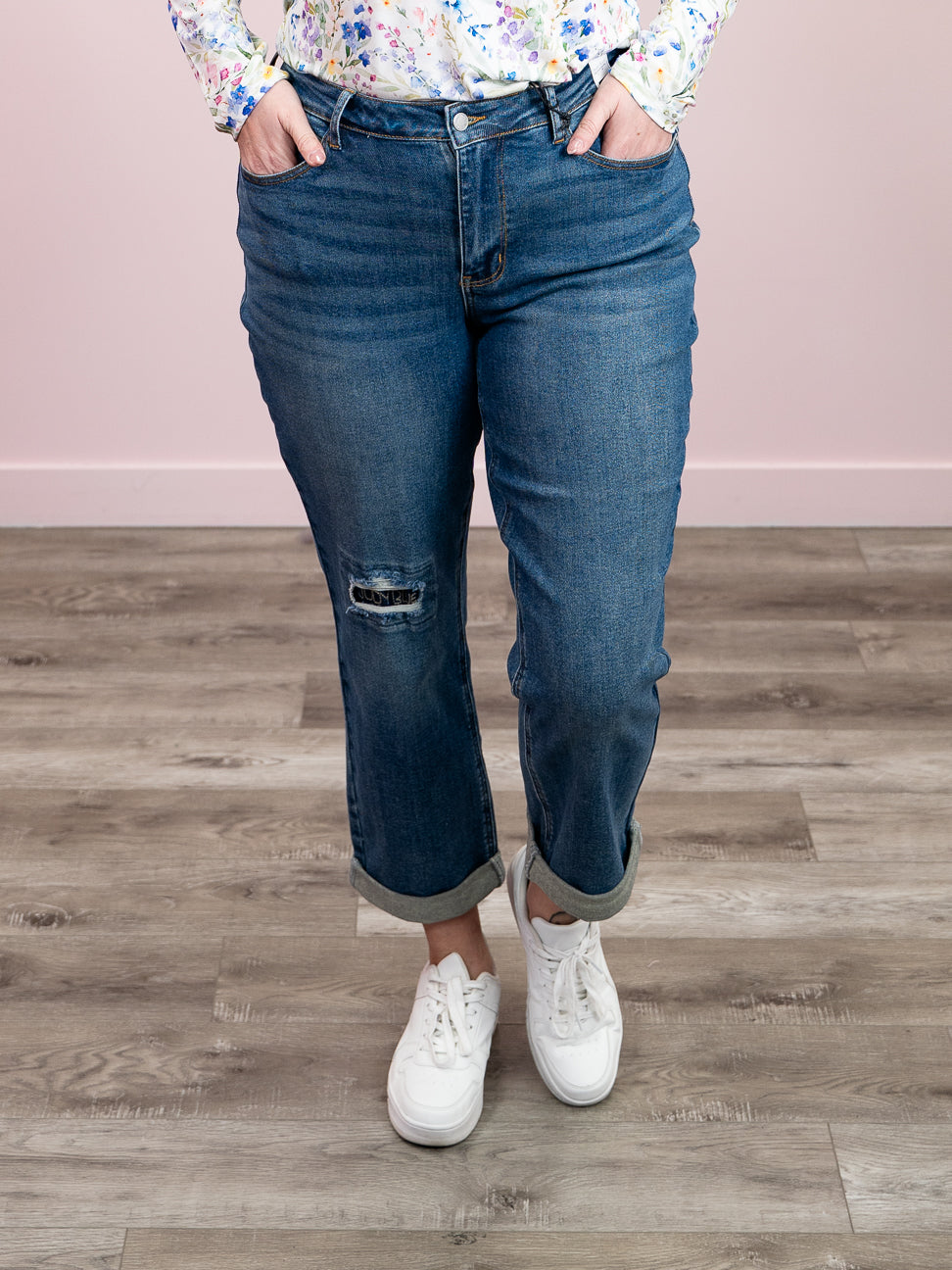 Meet Darryl—the boyfriend jean that actually gets you. This mid-rise stunner rocks a relaxed, slouchy fit that's effortlessly cool, paired with a medium wash that hits that sweet spot between vintage and modern. The single button and zipper closure keeps things simple and chic, while the right knee distressing with signature "JUDY BLUE" stitching adds just the right amount of edge. Throw them on with a crop top or oversized tee and watch the compliments roll in.
