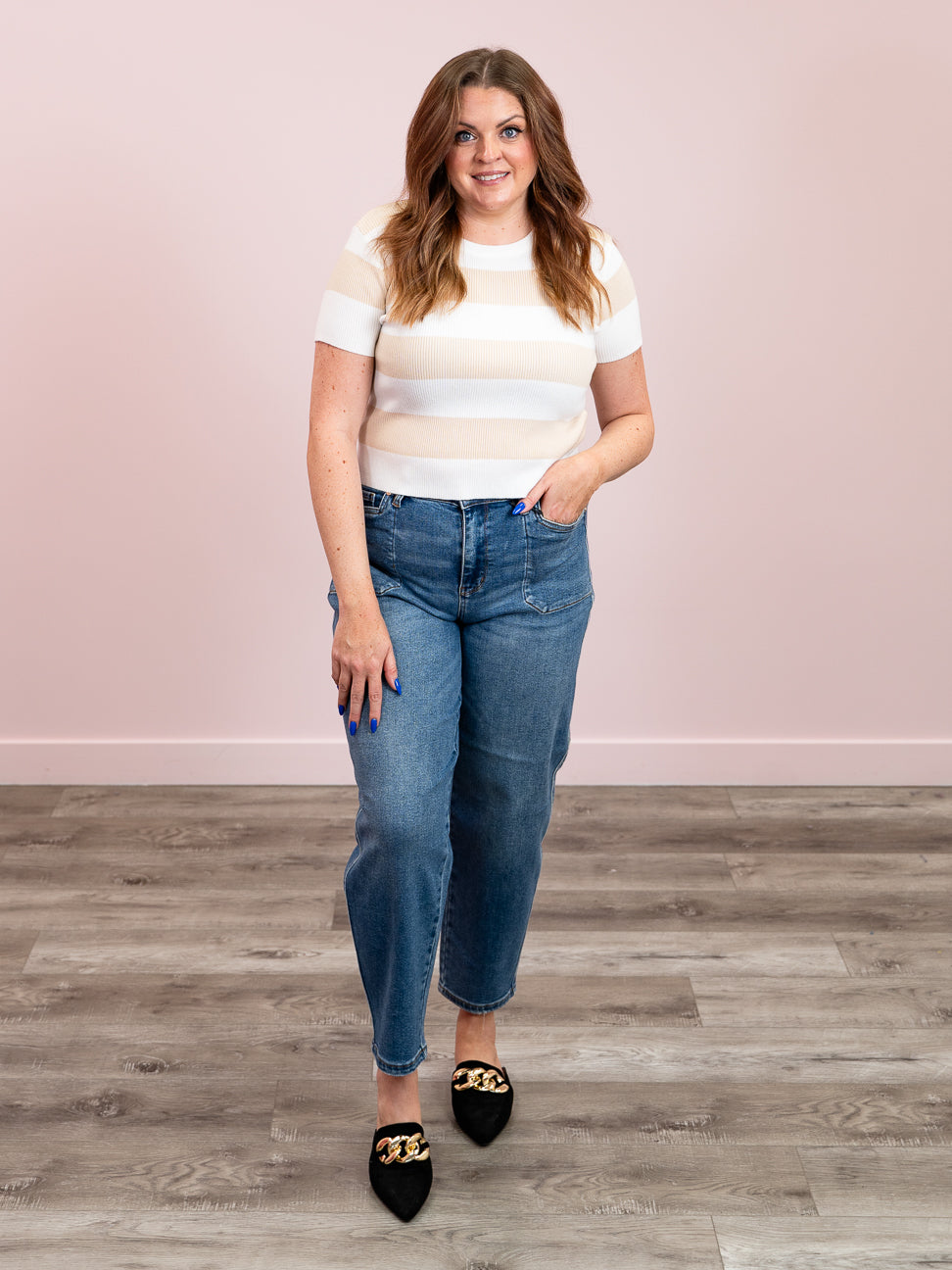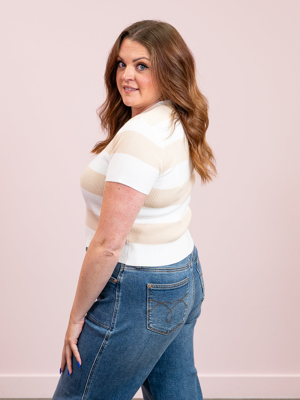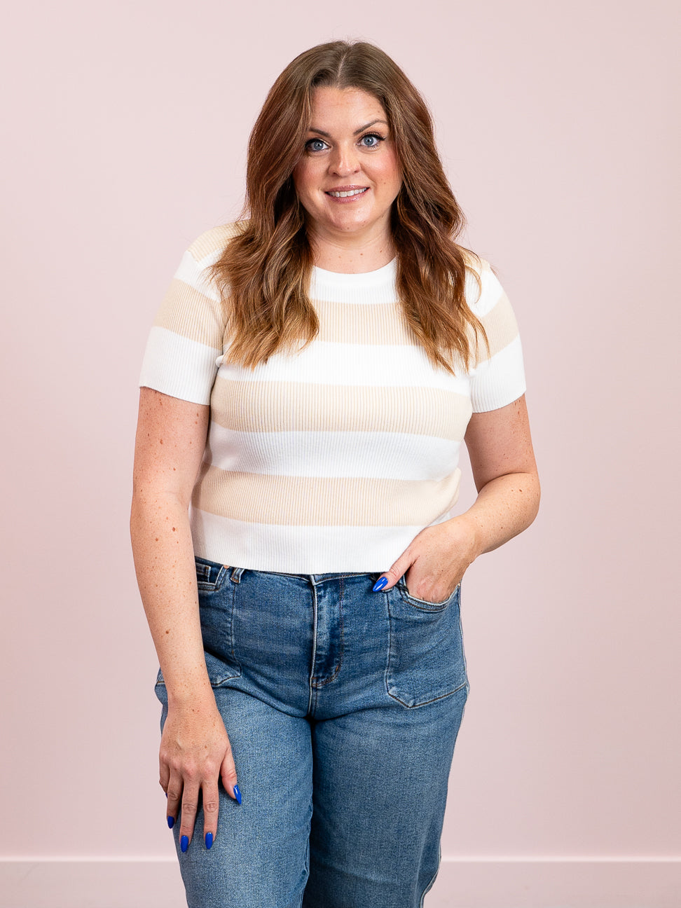 Everyday style made easy — the Kaya Short Sleeve Top features a classic round neck, ribbed material, and a timeless striped design. With a comfortable fit and short sleeves, it’s perfect for layering or wearing on its own.