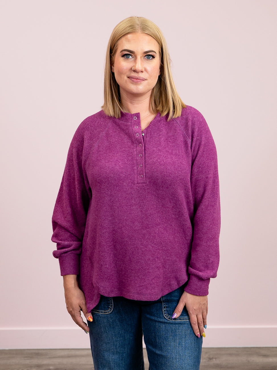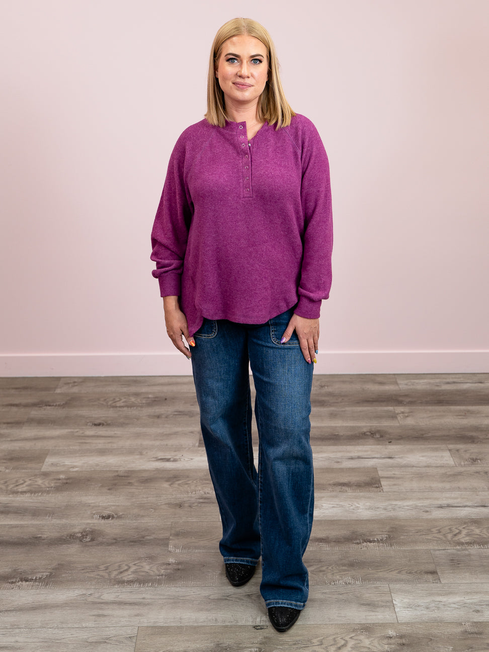 Kutcher Oversized Henley Sweater | Light Plum – Lavender & Lace Boutique