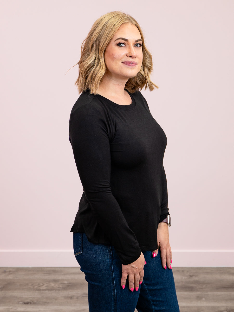 Stay cozy and chic in the Laura Long Sleeve Top. With its soft, stretchy fabric and relaxed fit, this top moves with you all day long. The round neck and long sleeves add a classic touch, while the round hem gives it a fun, flirty finish perfect for layering or wearing on its own.