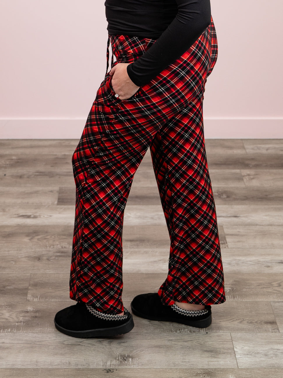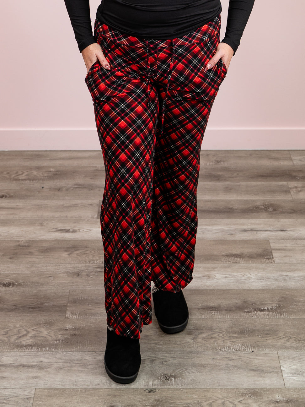*2PM DEAL* Lexy Lounge Pant | Criss Cross Plaid | Red – Lavender & Lace Boutique