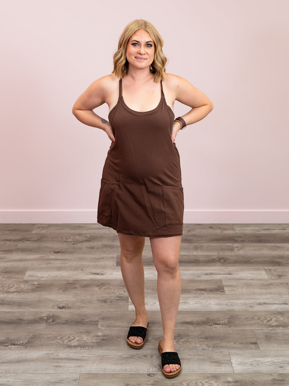 Step out in fun and effortless style with the Lopez Mini Dress Romper. Featuring a flattering scoop neck and adjustable straps for a perfect fit, it combines comfort with playful charm. Handy pockets keep your essentials close, while the built-in romper liner adds coverage and ease. Finished in a flirty mini length, this piece is ready for sunny days and carefree adventures.