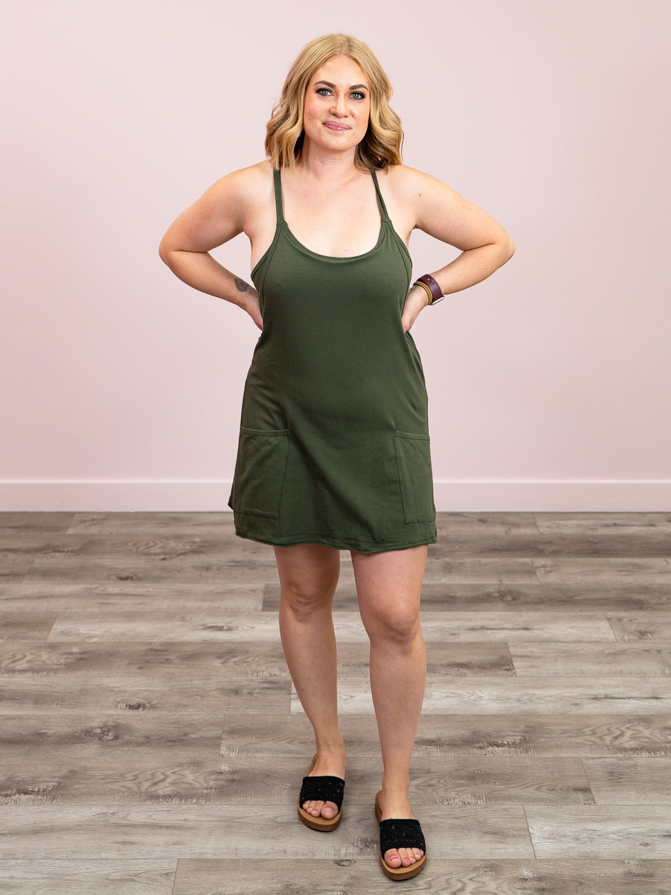 Step out in fun and effortless style with the Lopez Mini Dress Romper. Featuring a flattering scoop neck and adjustable straps for a perfect fit, it combines comfort with playful charm. Handy pockets keep your essentials close, while the built-in romper liner adds coverage and ease. Finished in a flirty mini length, this piece is ready for sunny days and carefree adventures.