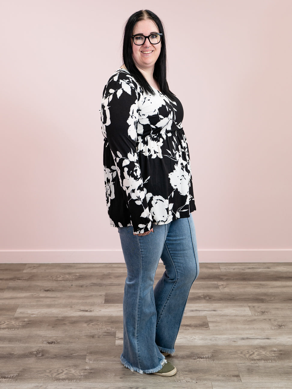New Chapter Long Sleeve Babydoll Top | Black & Ivory Floral – Lavender & Lace Boutique