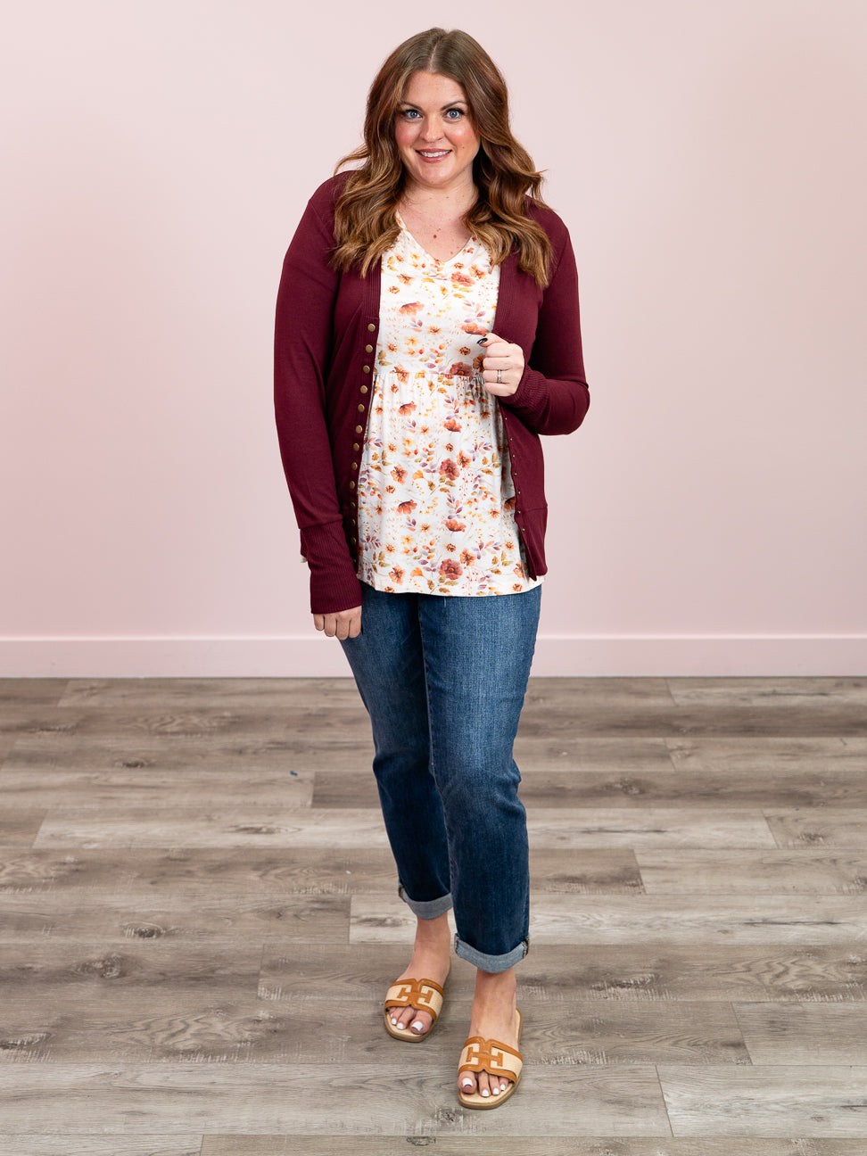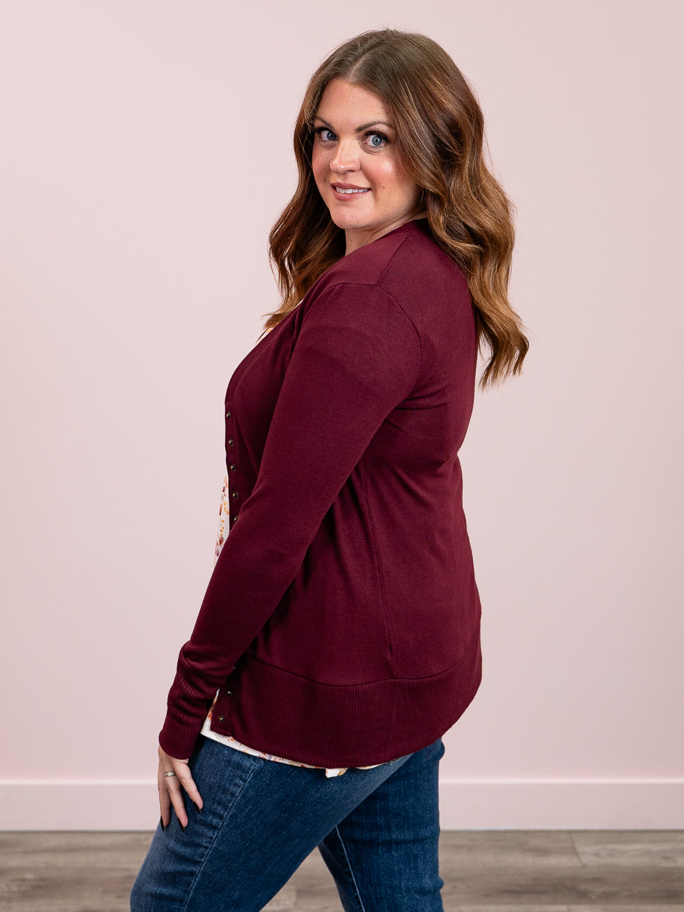 *11AM DEAL* Oh Snap Cardigan | Dark Burgundy