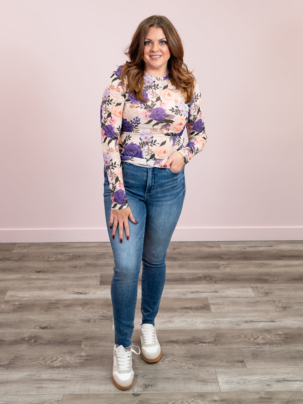 Introducing the Shirley Maggie Mesh Top! Experience the perfect combination of style and comfort with its lightweight mesh material and stretchy design. The crew neck and long sleeve provide coverage while the design adds a touch of femininity. Upgrade your wardrobe with this must-have top.