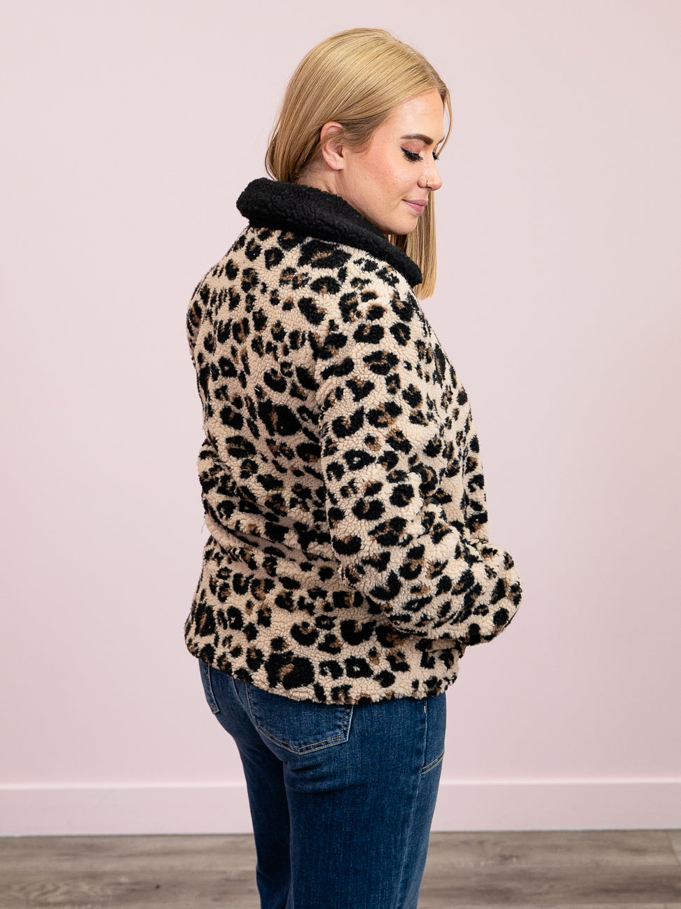 RD Style | Joline Sherpa Jacket | Black Animal Print