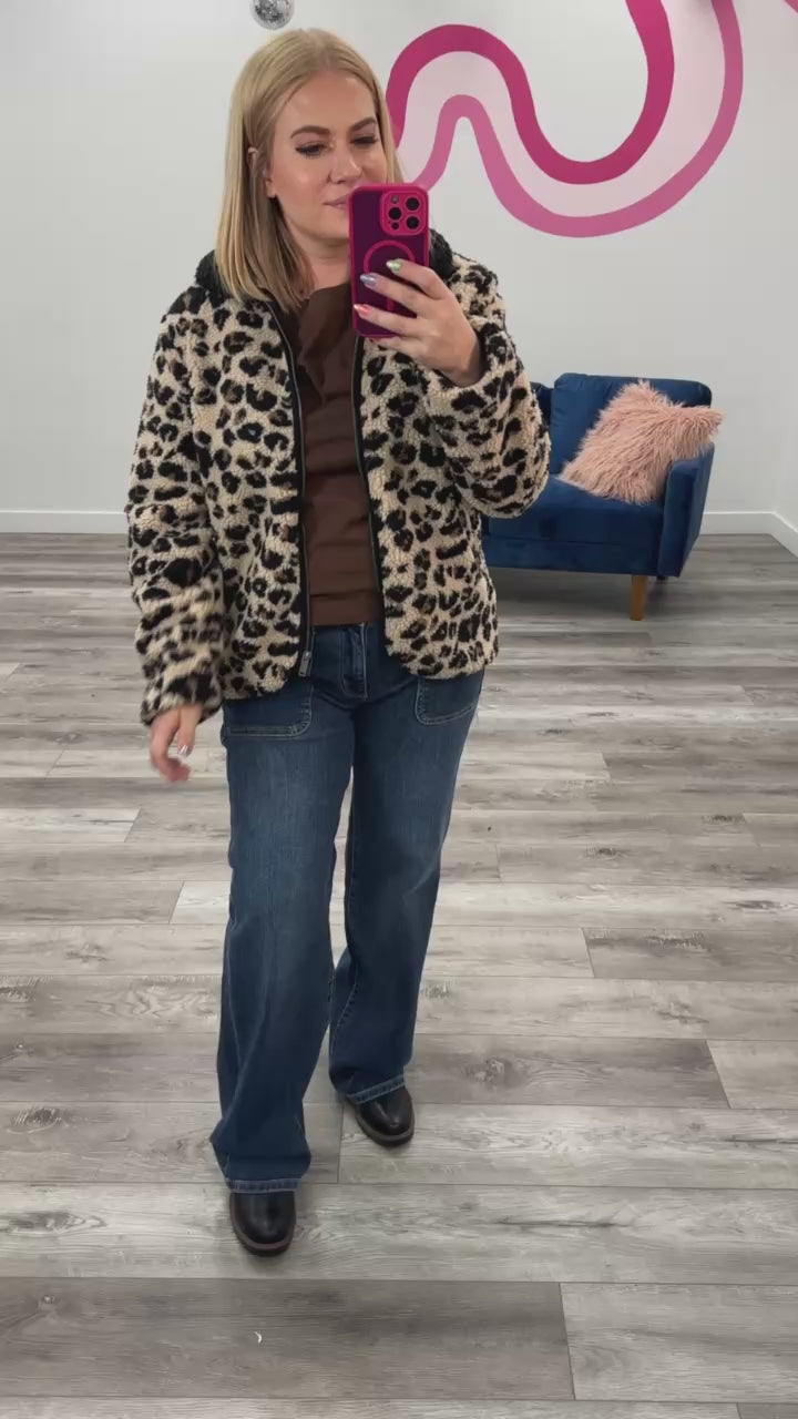 Stay warm and stylish in the RD Style Joline Sherpa Jacket. Made from ultra-soft sherpa and fully lined for extra comfort, this cozy layer features a classic collar, front zipper closure, and functional pockets. The rounded hem adds a feminine touch, while a fun leopard design gives it charm. Perfect for layering on cooler days.