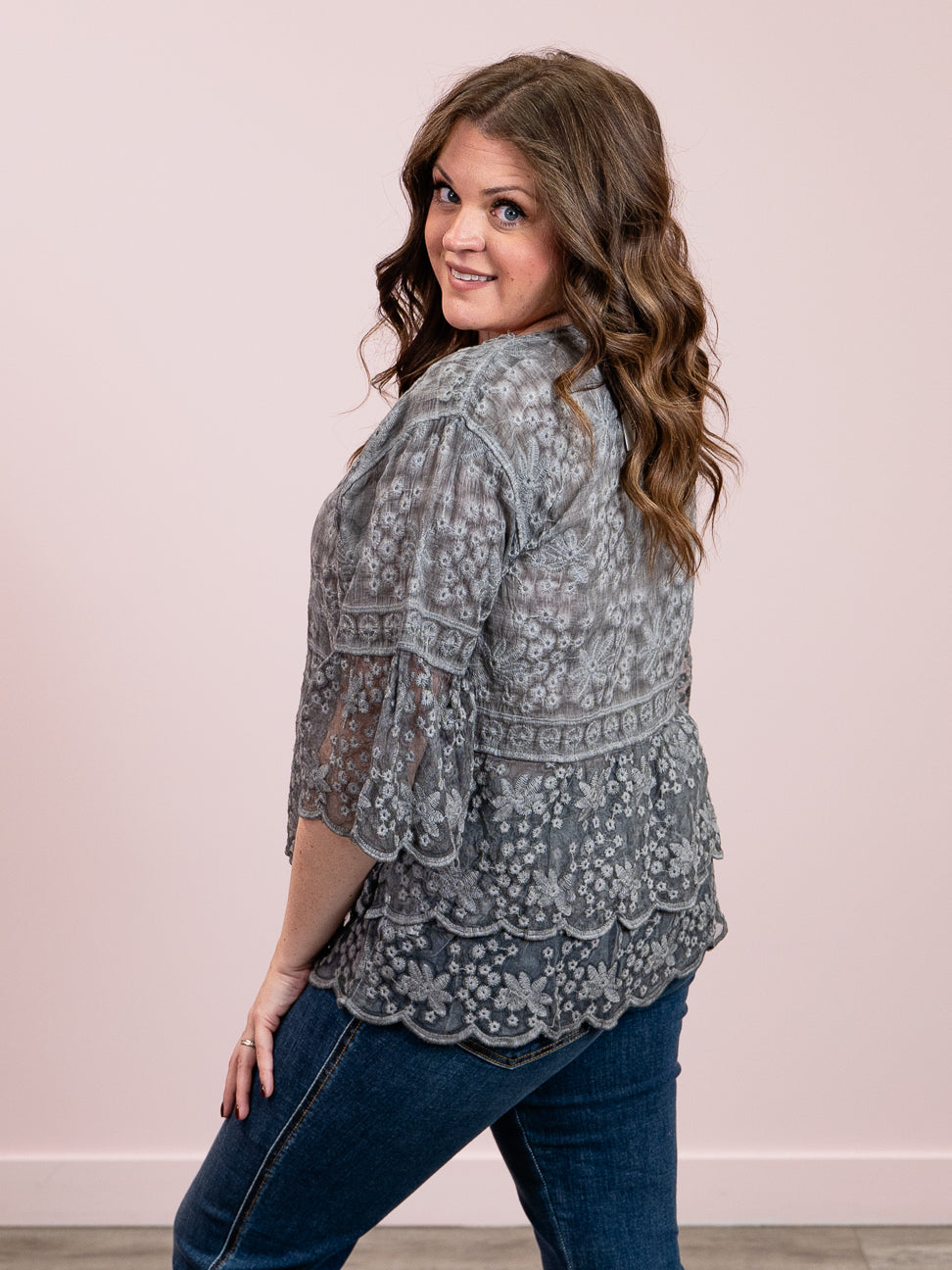 *NEW* Carly Bell Sleeve Lace Blouse | Grey
