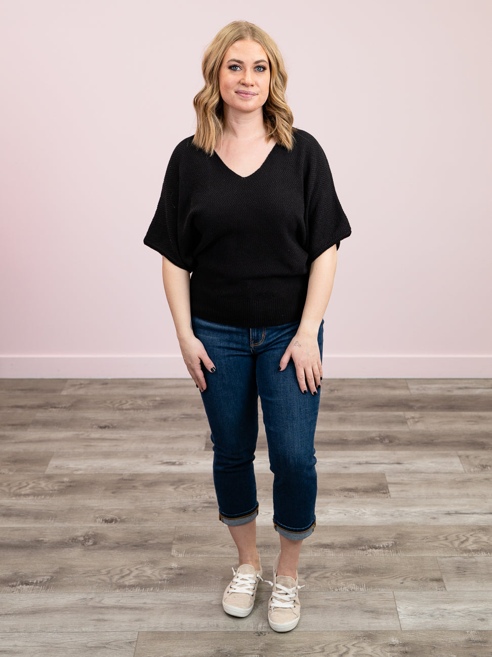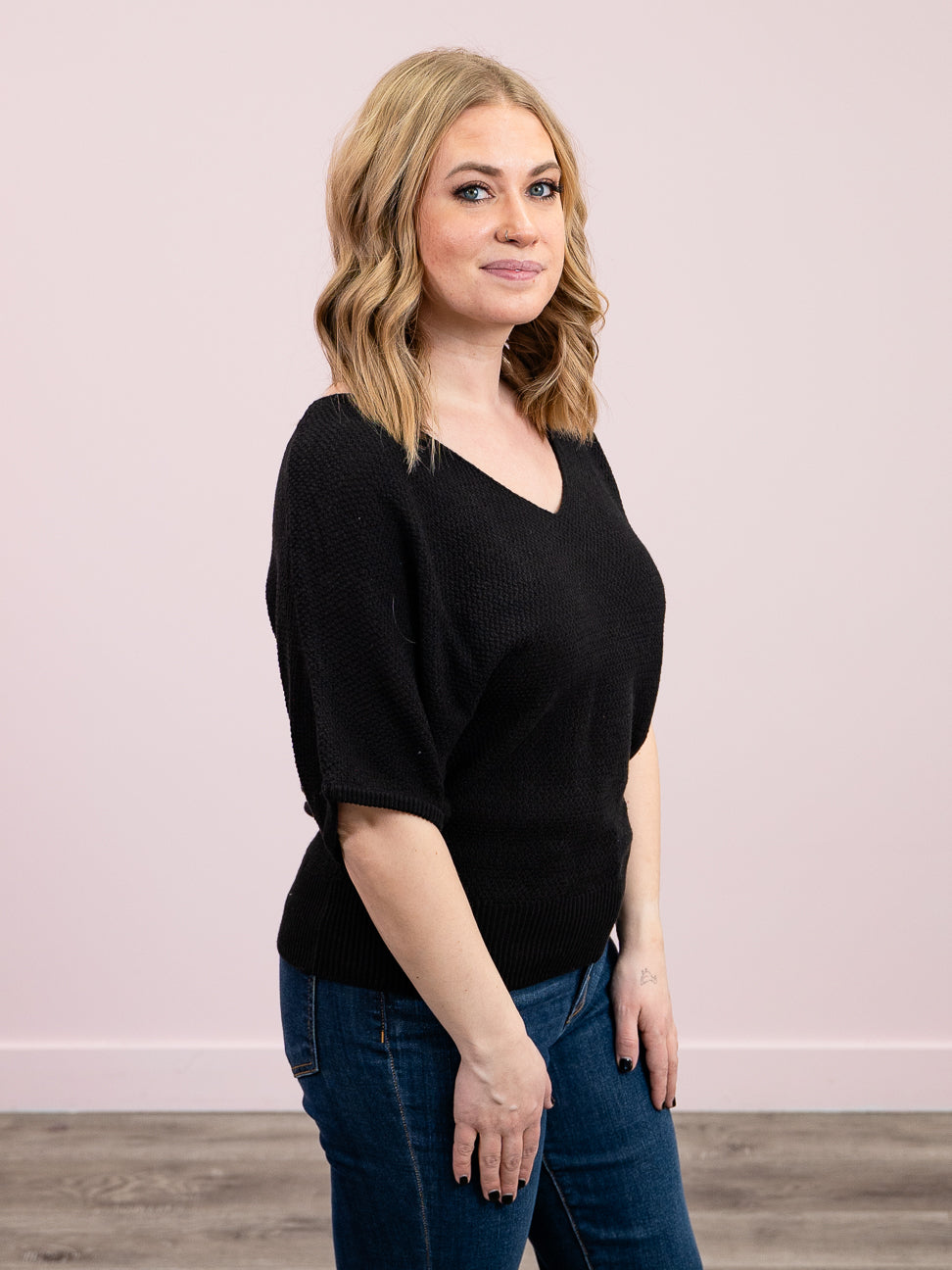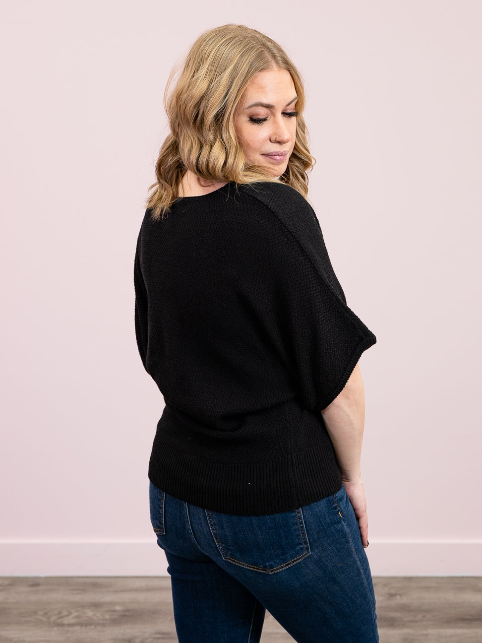 *NEW* Rian V-Neck Short Sleeve Dolman Sweater | Black – Lavender & Lace Boutique