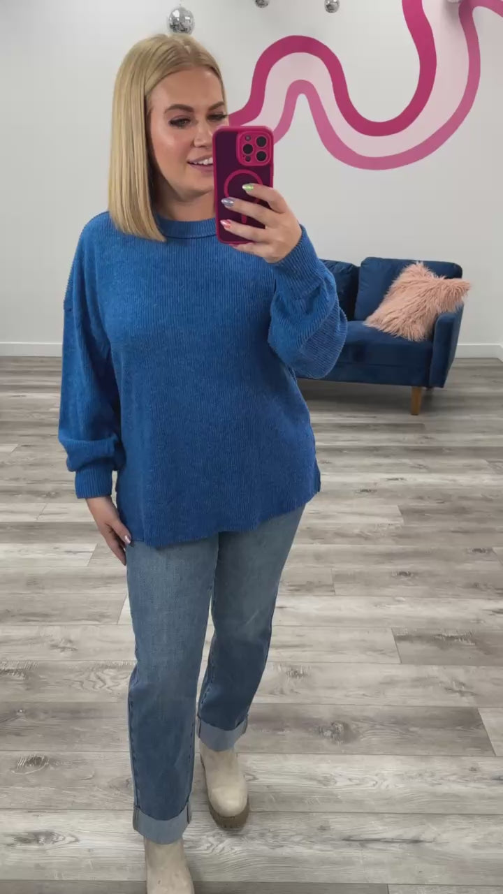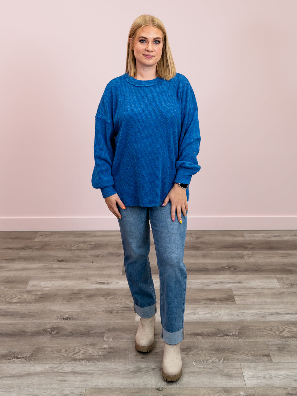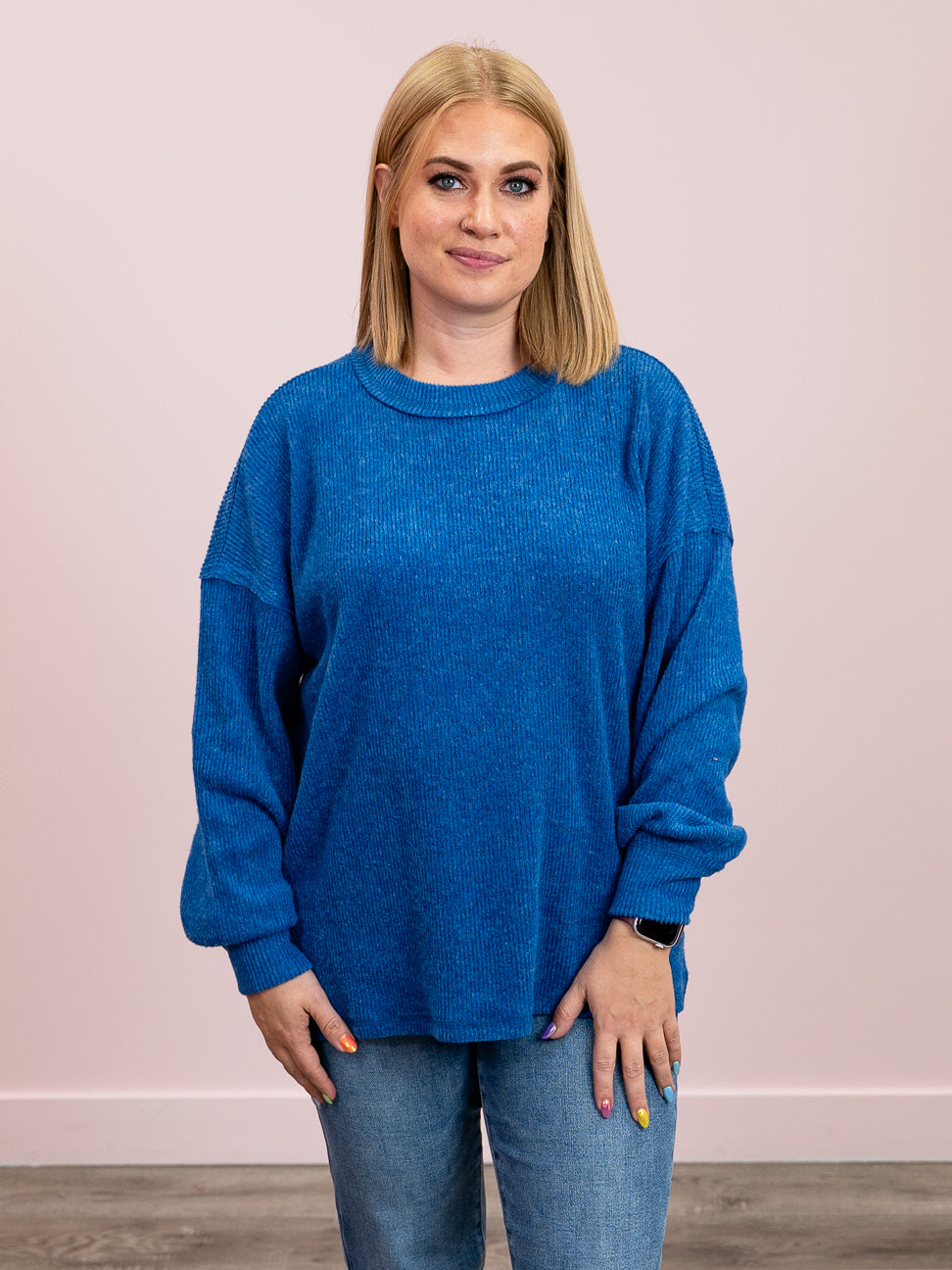 Rylee Ribbed Drop Shoulder Sweater | Light Navy