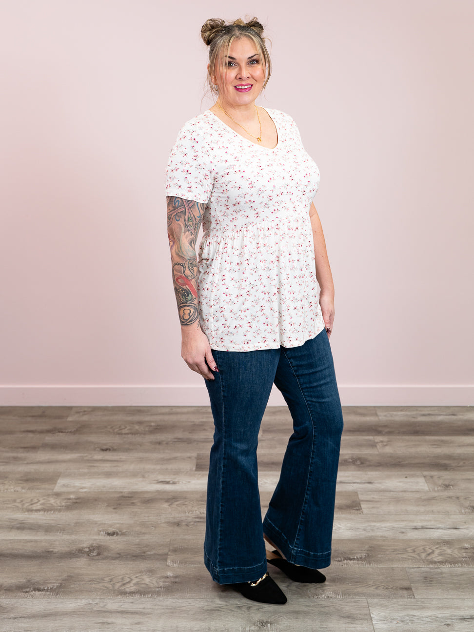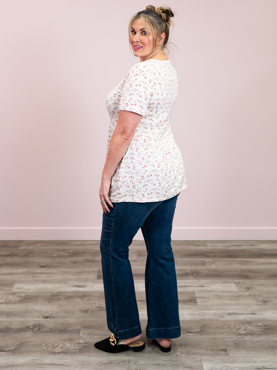 Feminine, flattering, and unbelievably comfortable—the Sarah Top checks all the boxes. Featuring a soft V-neckline and flowy babydoll silhouette, this short sleeve style is adorned with a gorgeous floral print that adds a pop of charm. Made from a buttery soft, stretchy fabric, it offers all-day comfort without sacrificing style.