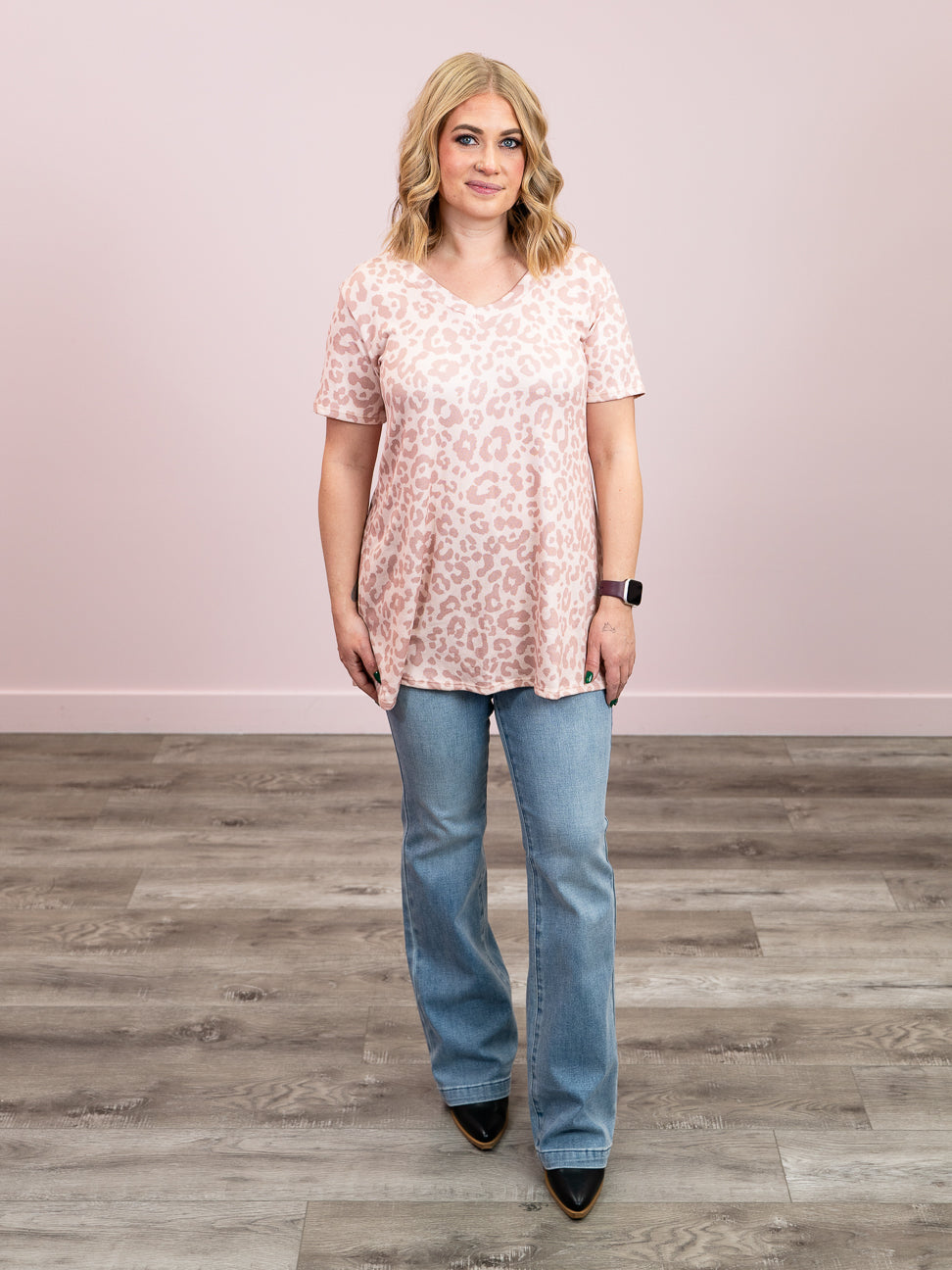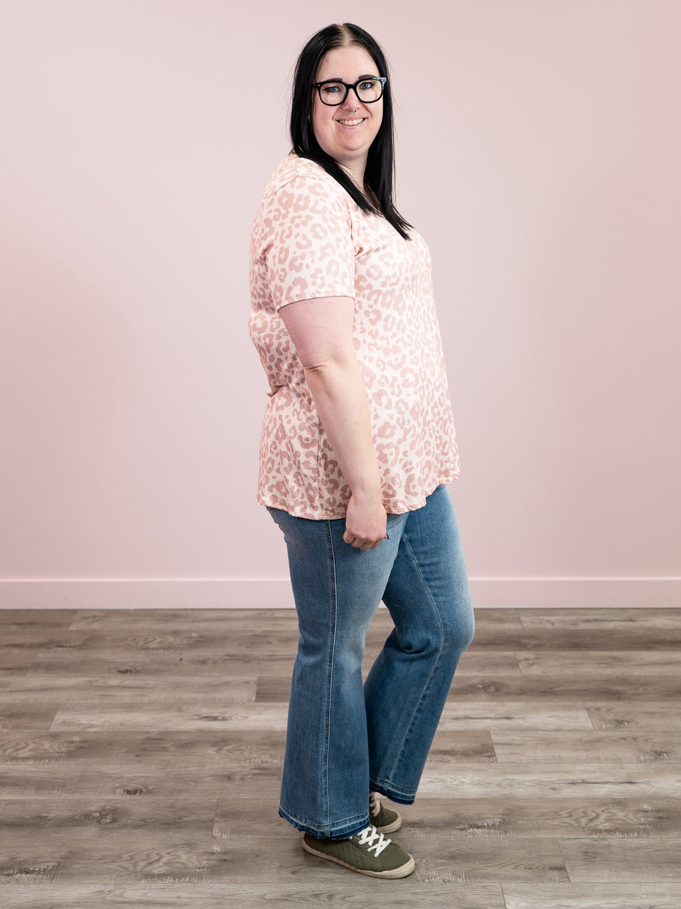 Expertly designed for comfort and style, the Sarah Tee is a must-have addition to your wardrobe. The v-neck and longer tee sleeves provide a flattering fit, while the rounded hem adds a touch of elegance. Made with stretchy fabric, this tee effortlessly combines fashion and function.