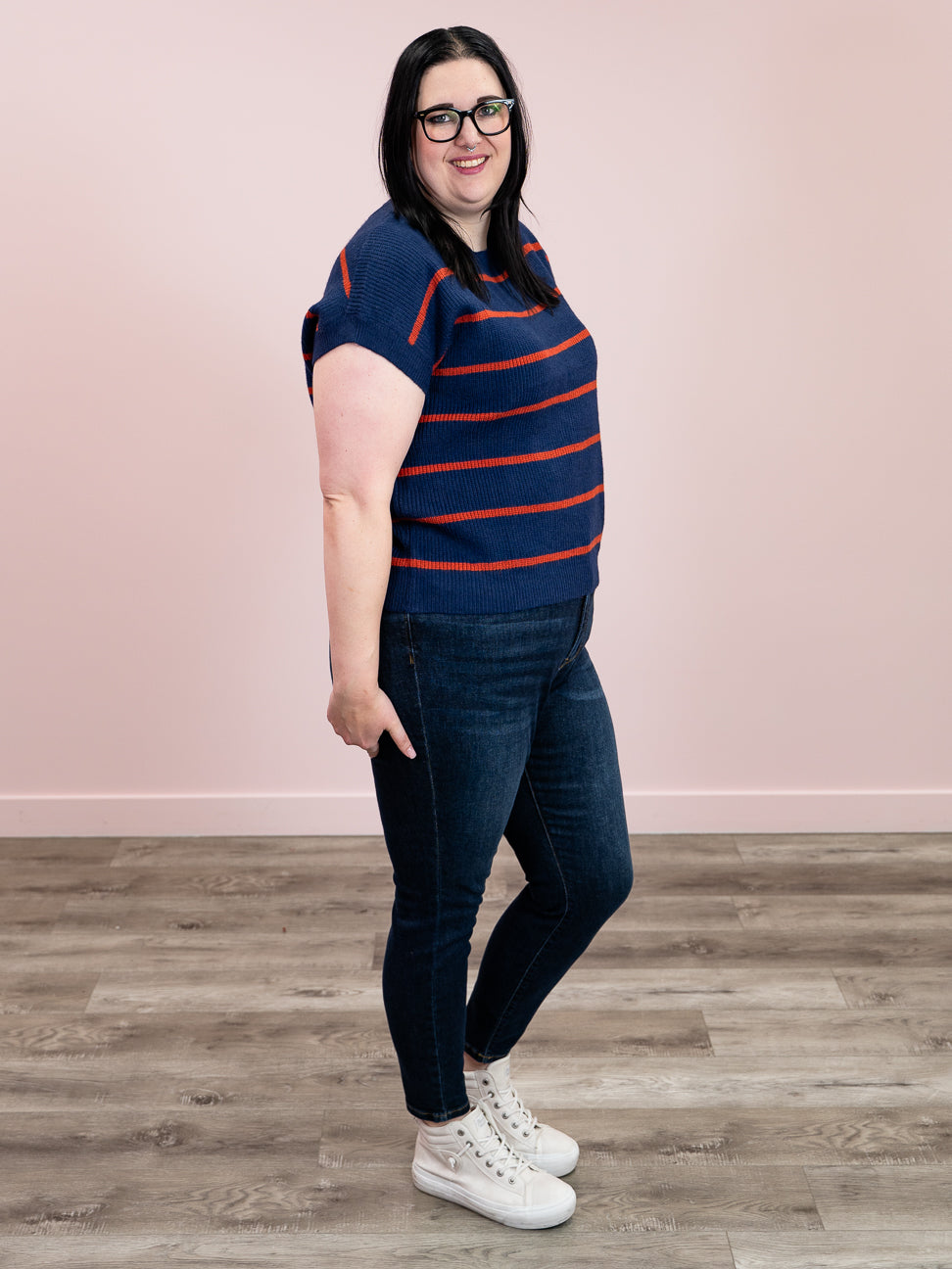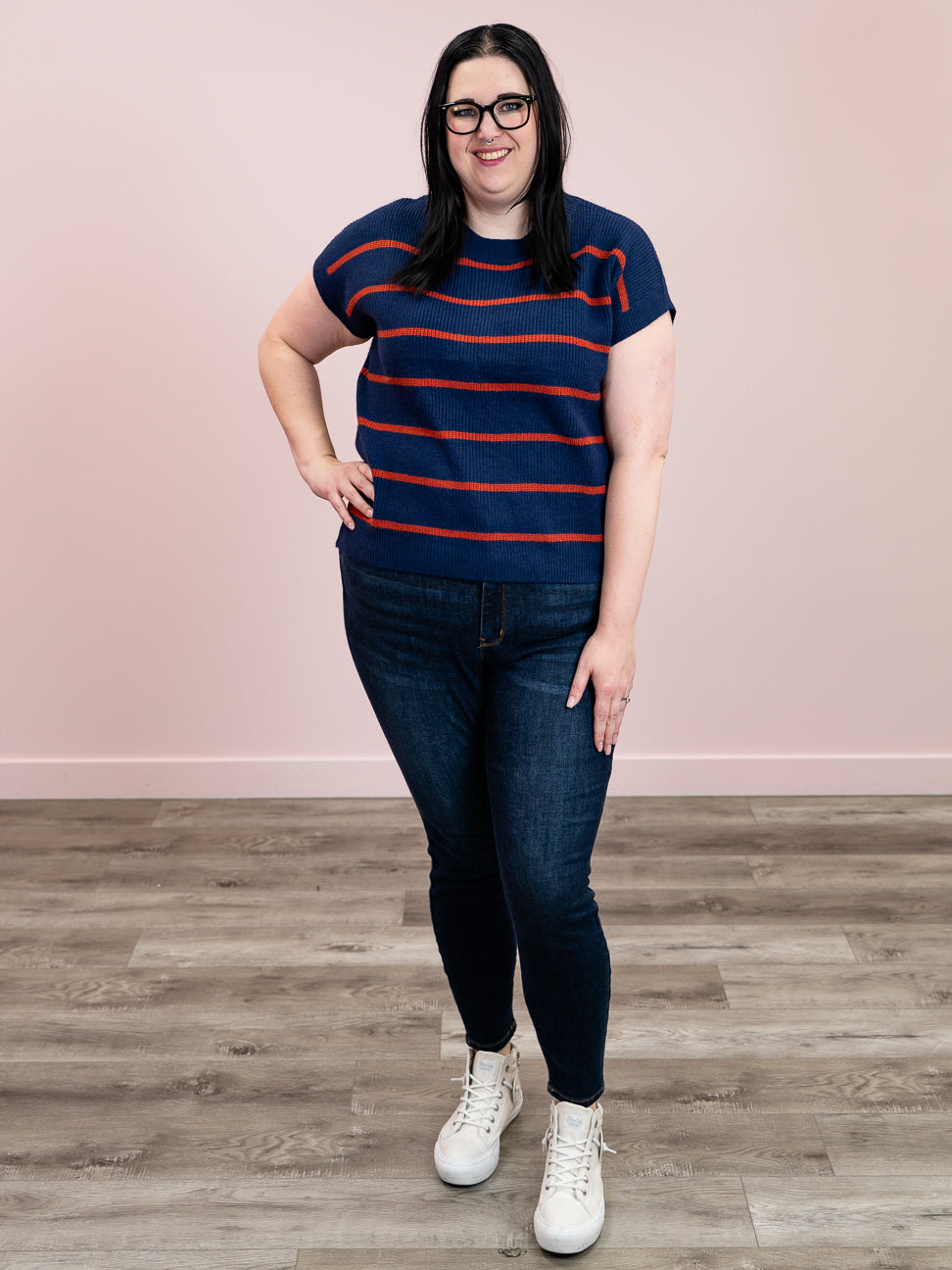 Sonia Striped Sweater Top | Navy