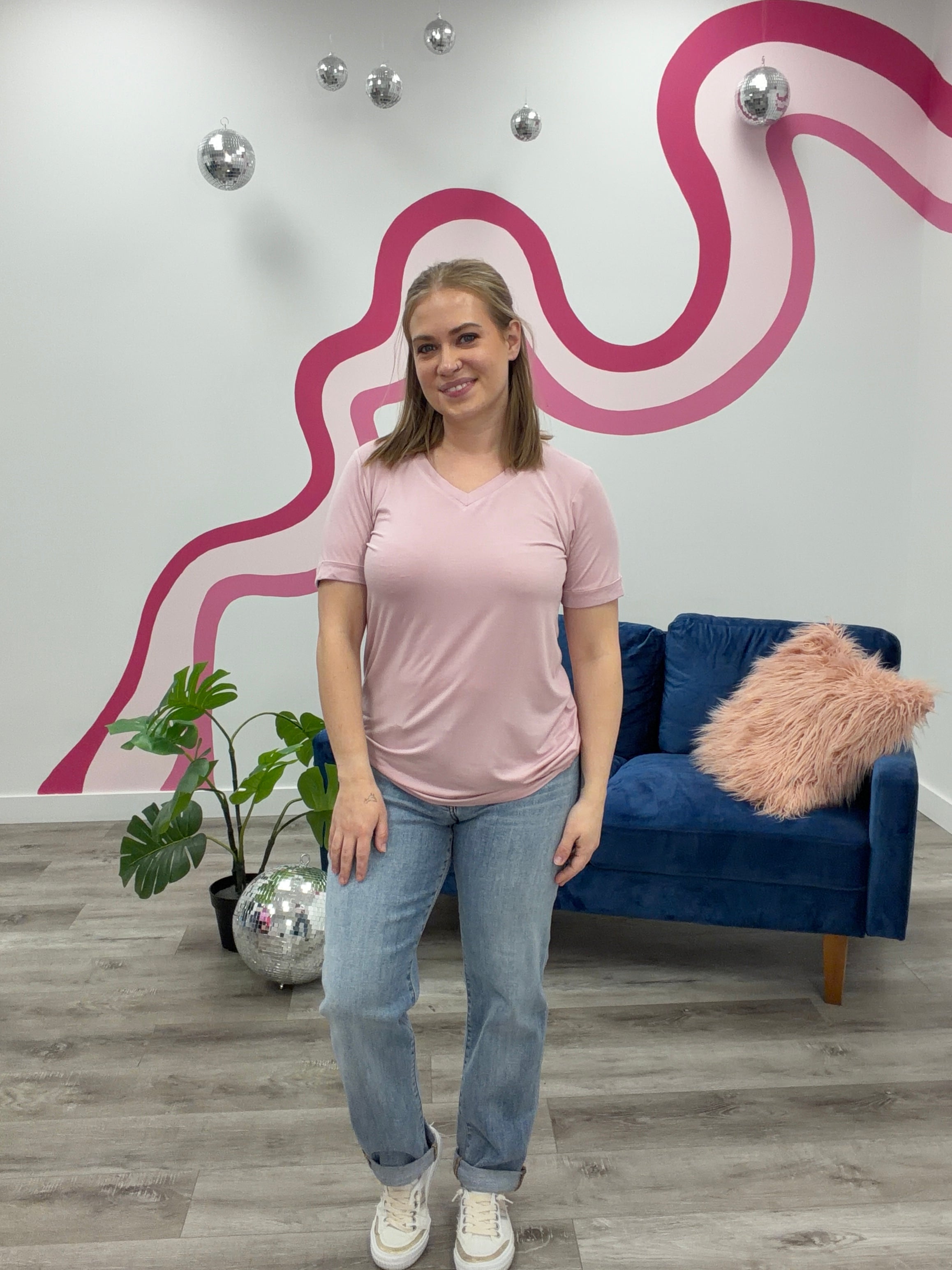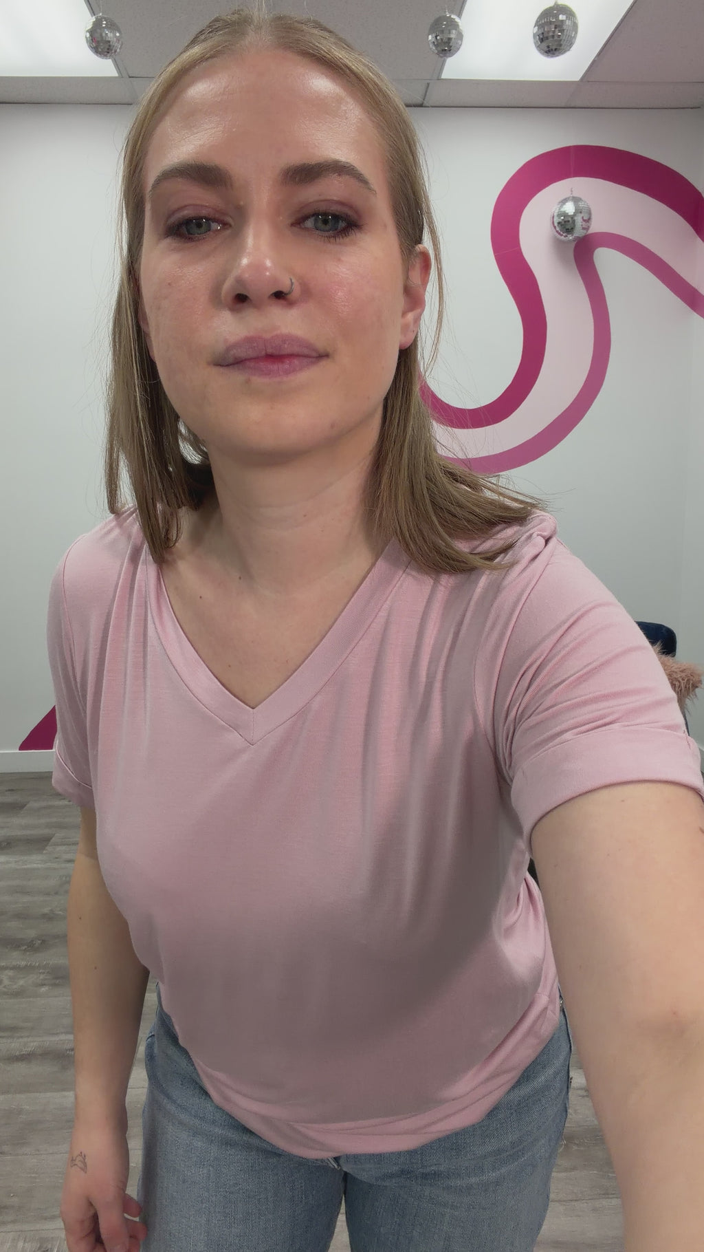 The Sophie Tee is the ultimate wardrobe essential. This versatile tee features a classic V-neckline and cuffed sleeves for a touch of casual elegance. Made from buttery soft, high-stretch fabric, it's perfect for layering or wearing on its own. This tee is sure to become your go-to piece for effortless style.