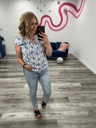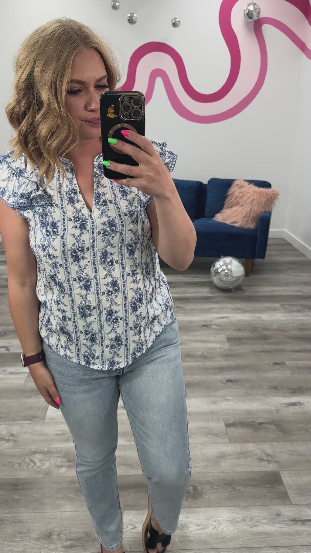 *FINAL SALE* Winifred Floral Ruffle Sleeve Top | Denim Multi – Lavender & Lace Boutique